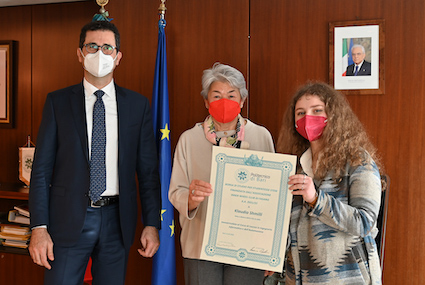 Alla presenza del Magnifico Rettore Francesco Cupertino, la presidente del Club ha consegnato il riconoscimento a Klaudia Shmilli, studentessa prescelta e meritevole, immatricolata al Corso di Laurea in Informatica e Automazione. Durante la cerimonia la presidente Angela Cupertino ha illustrato i principi e le finalità che connotano l’azione del Club e che sono alla base di questa iniziativa.
