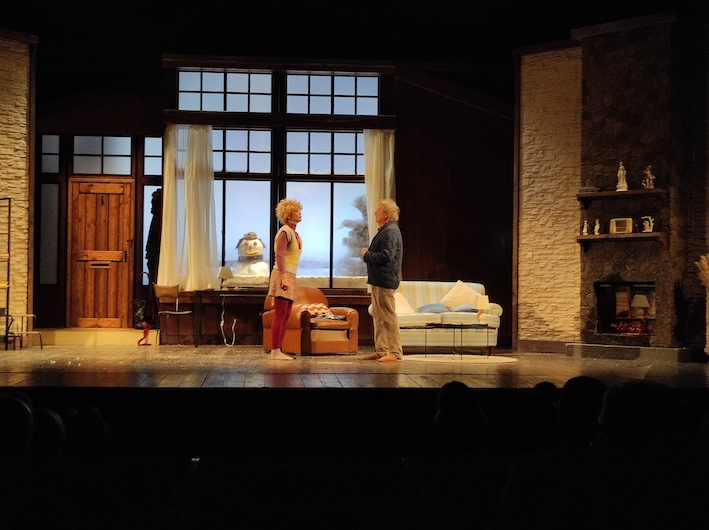 In una scenografia molto curata e avvolgente, a rappresentare il salotto di un cottage in mezzo ai campi, Enzo Iacchetti ha prestato il volto a Patrick, uomo di mezz’età misantropo e superficialmente felice, che dialoga con un busto di Seneca e ascolta musica per riempire i propri vuoti. A dividere la scena con lo showman lombardo è stata la bravissima Vittoria Belvedere, che ha interpretato Judith, donna chiassosa e stravagante solo apparentemente avulsa alla vita di Patrick.