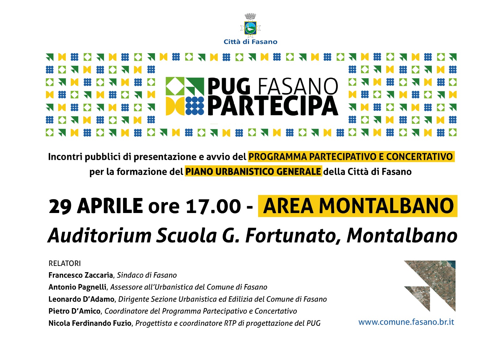 FASANO – Sarà Montalbano a ospitare il sesto tavolo di progettazione partecipata per la realizzazione del Pug, il piano urbanistico generale