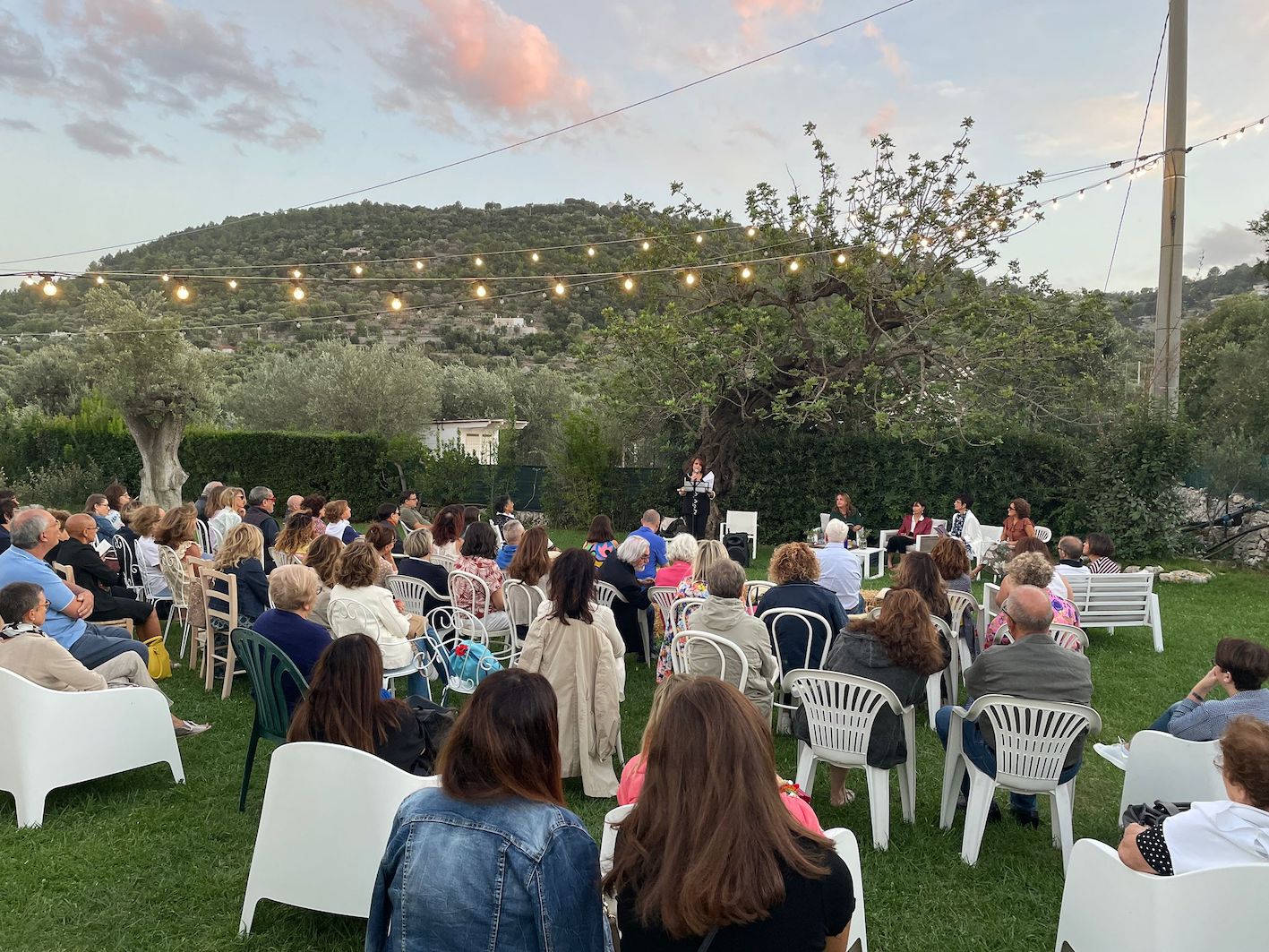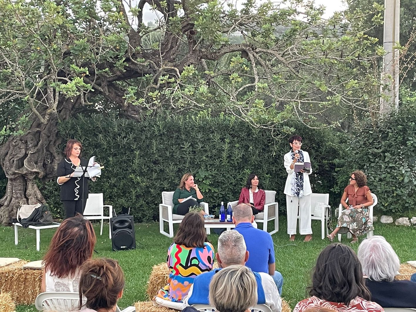 Fasano – Lo sfondo delle colline di Laureto e Monte Cannone sono state parte dell’incantevole giardino di Masseria Fragnale che ha ospitato la presentazione del libro di Irene Némirovsky “Tempesta in giugno”, tradotto dalla fasanese Teresa Lussone.
