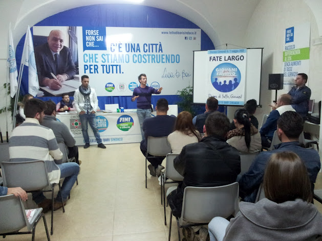 Nell’incontro si è anche discusso di problematiche, idee, progetti, ambizioni e speranze per tutti i giovani fasanesi. “A breve presenteremo un progetto – assicura Mancini – che grazie alle idee di tutti e alle capacità tecnico-informatiche del nostro dirigente Giuseppe Pace siamo riusciti a realizzare. Un progetto che abbiamo valutato e studiato nei minimi dettagli che sarà ben presto alla portata di tutti: per questo decido di mantenere per ora il riserbo e lasciarvi la sorpresa poiché dopo qualche altro ritocco verrà presentato pubblicamente a tutti i cittadini". L’incontro oltre ad essere stato molto partecipato è solo uno dei tanti che rientrano nel programma del movimento giovanile che già da 7 anni è il gruppo più attivo su tutto il comune di Fasano. Tempo fa lo stesso Mancini affermò che il comitato promotore del gruppo giovani che ha sempre sostenuto il centrodestra qui a Fasano è il più numeroso e attivo della provincia di Brindisi.