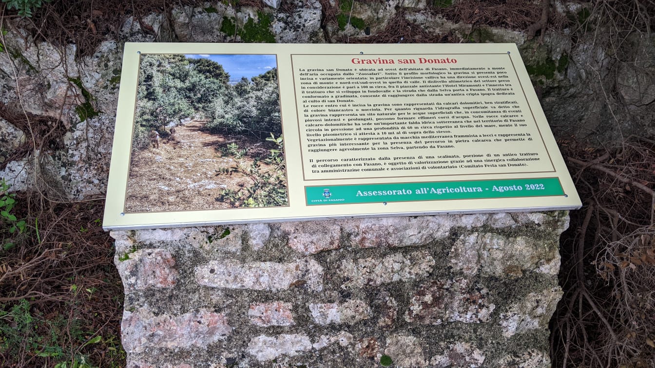 Fasano – Lungo le principali gravine del territorio di Fasano sono stati posizionati nuovi cartelli che ne indicano le caratteristiche e le peculiarità orografiche, geologiche e naturalistiche.