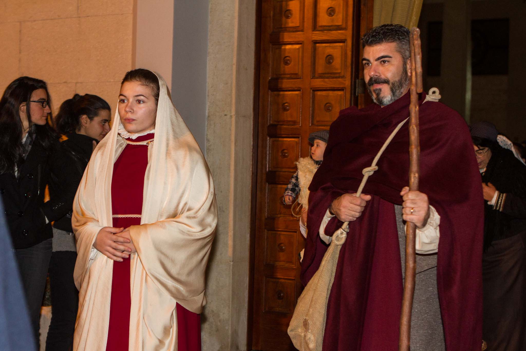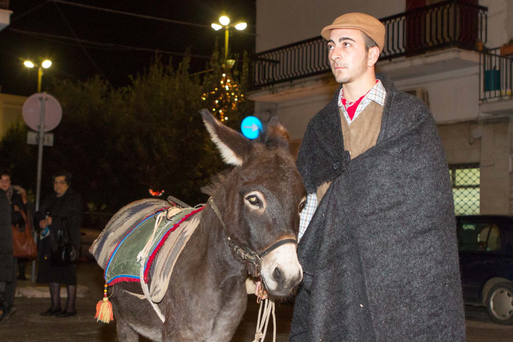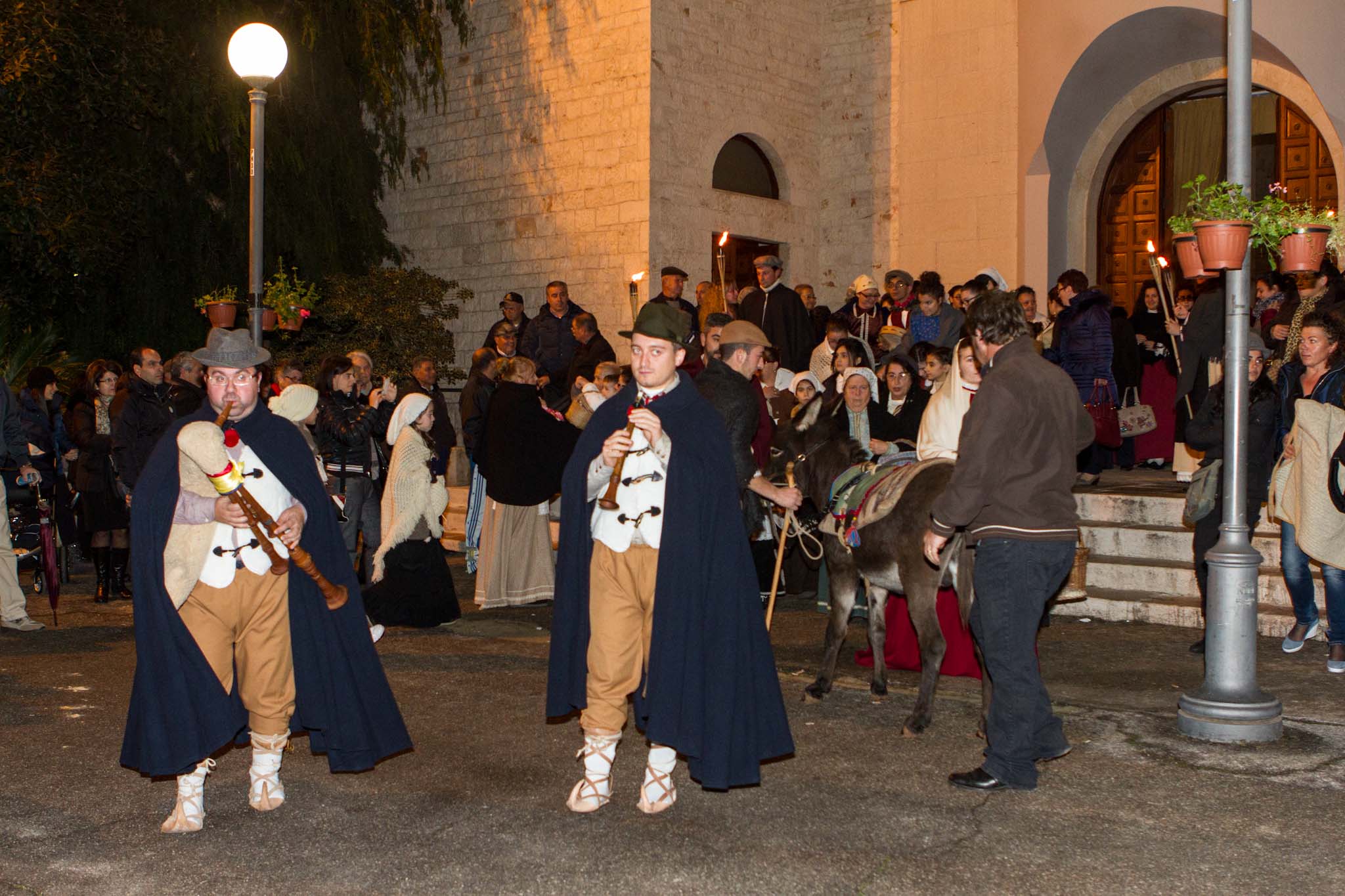 L’atmosfera nella frazione fasanese è diventata subito magica con fiaccole, ciaramella, zampogna e nenie natalizie cantate e suonate. Giuseppe e Maria sulla groppa dell’asinello alla ricerca di una dimora.