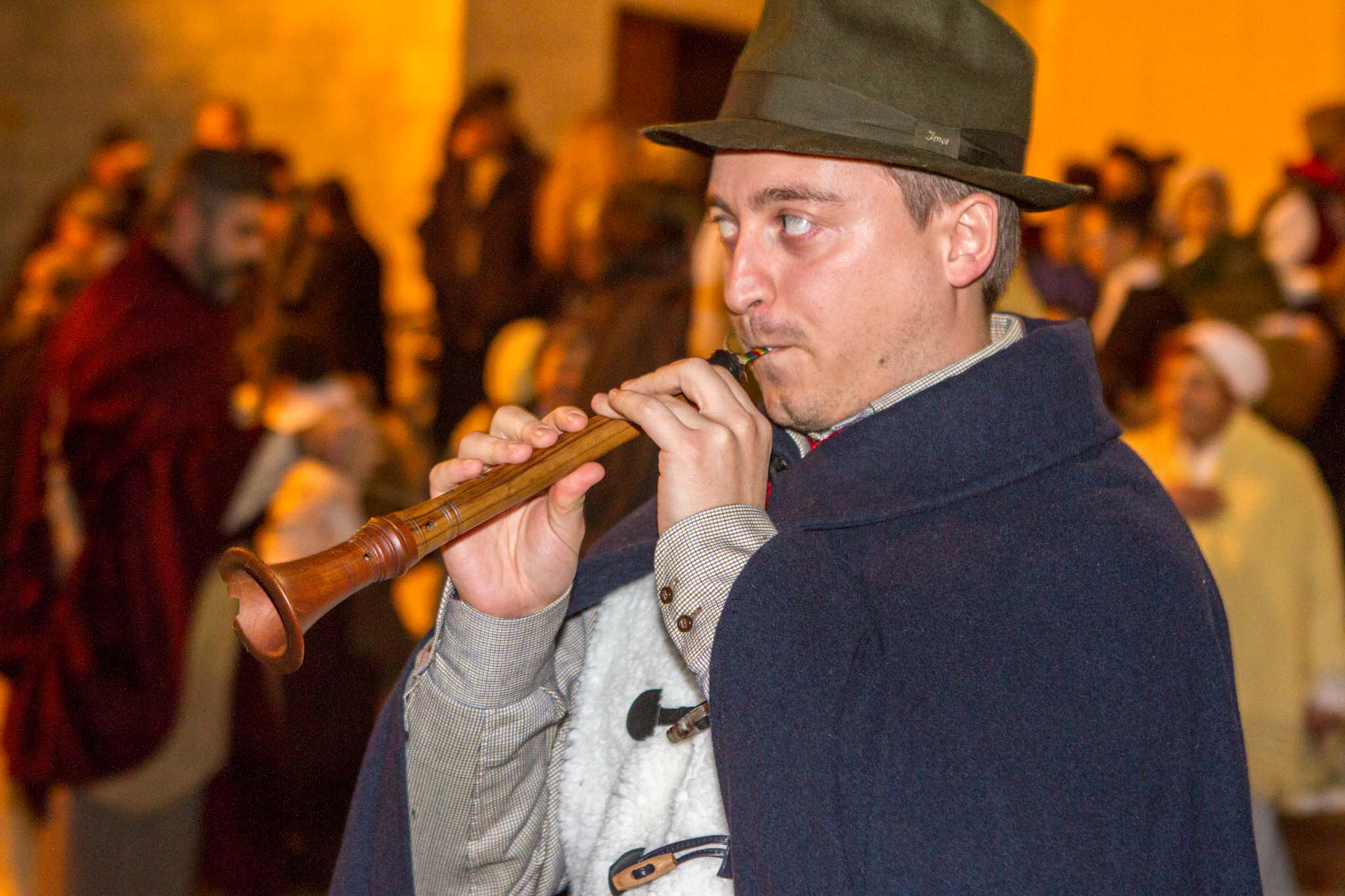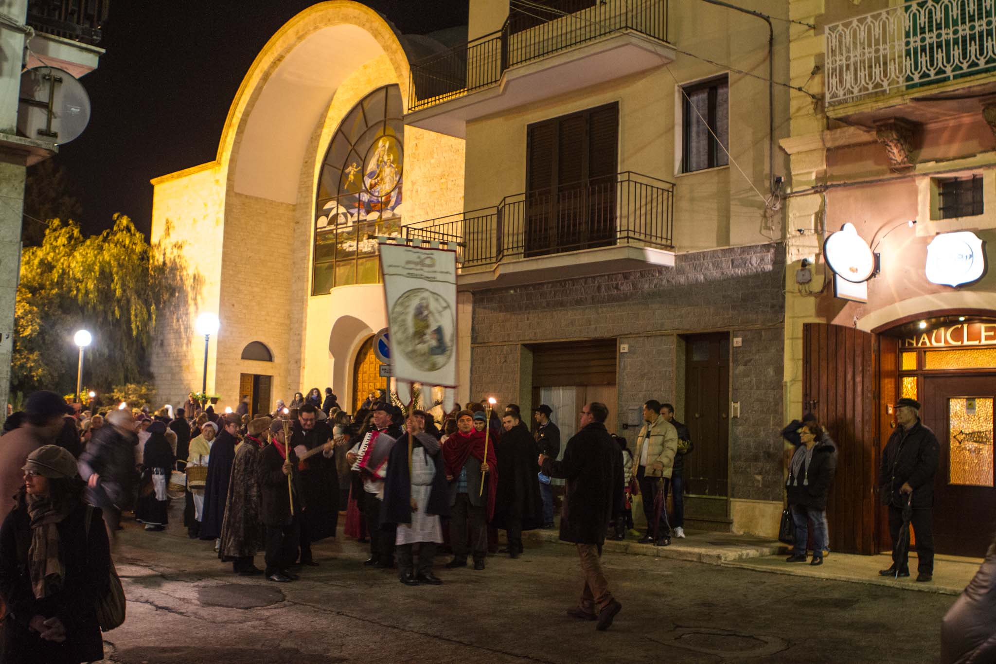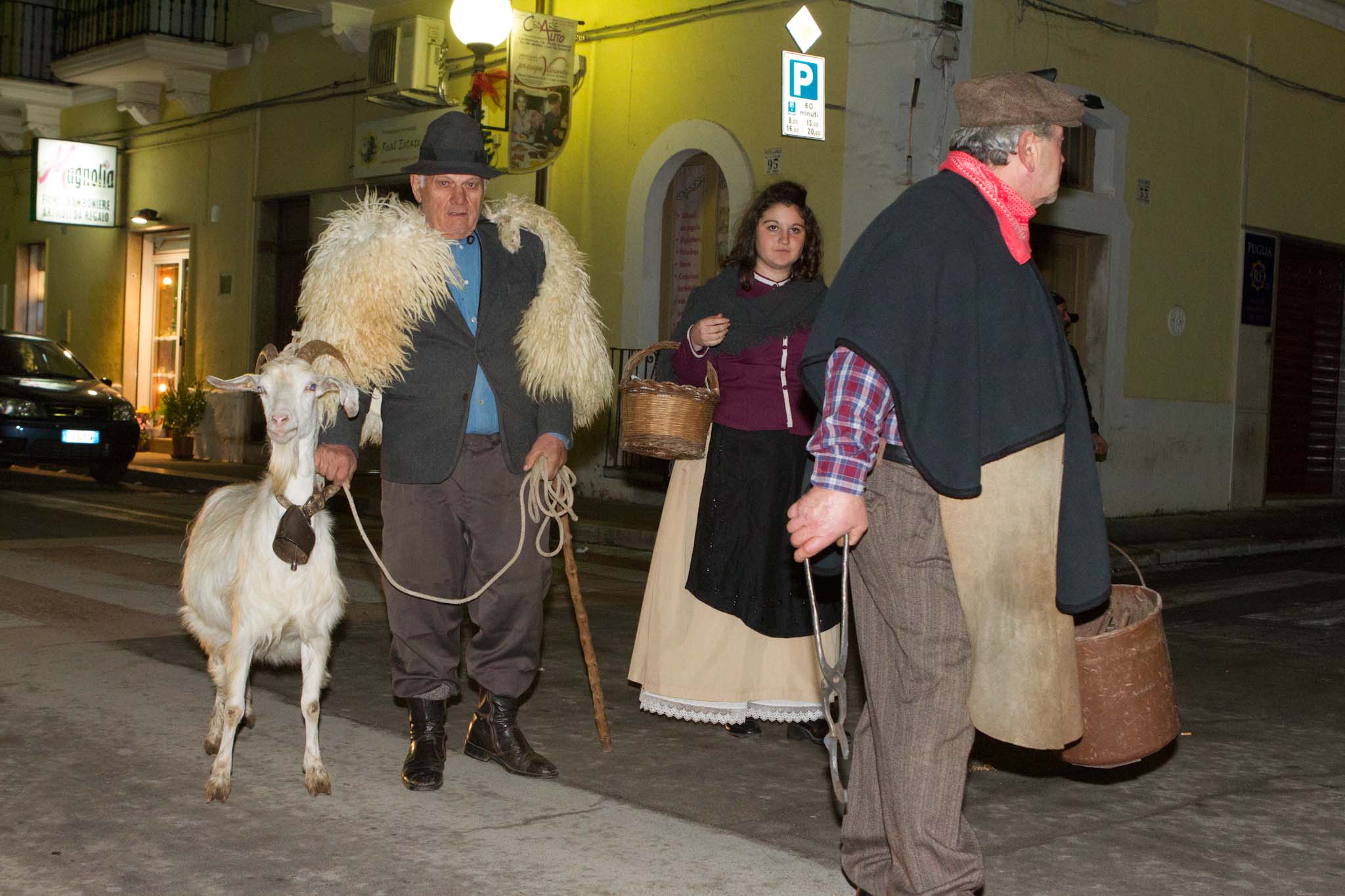 L’atmosfera nella frazione fasanese è diventata subito magica con fiaccole, ciaramella, zampogna e nenie natalizie cantate e suonate. Giuseppe e Maria sulla groppa dell’asinello alla ricerca di una dimora.