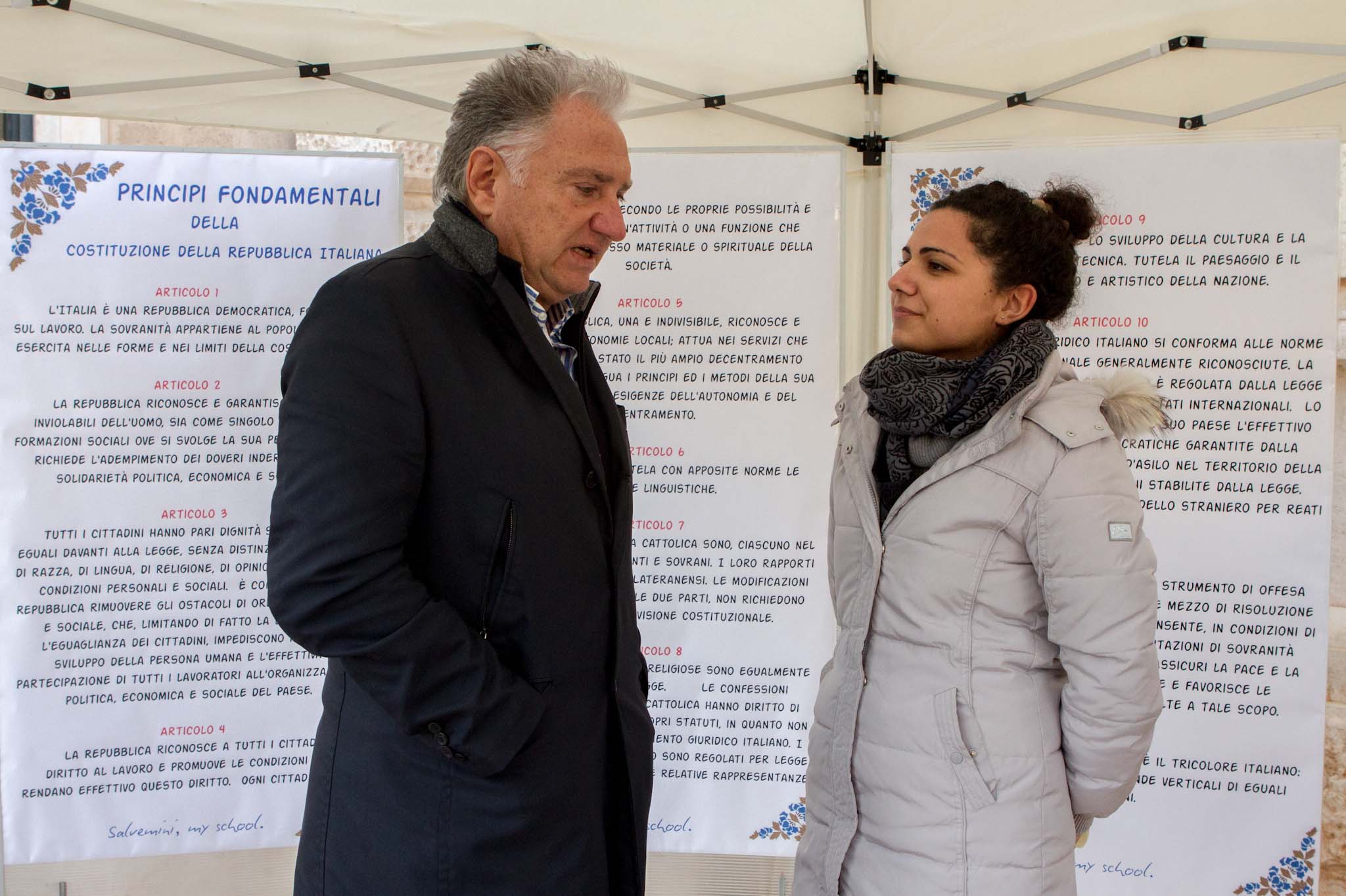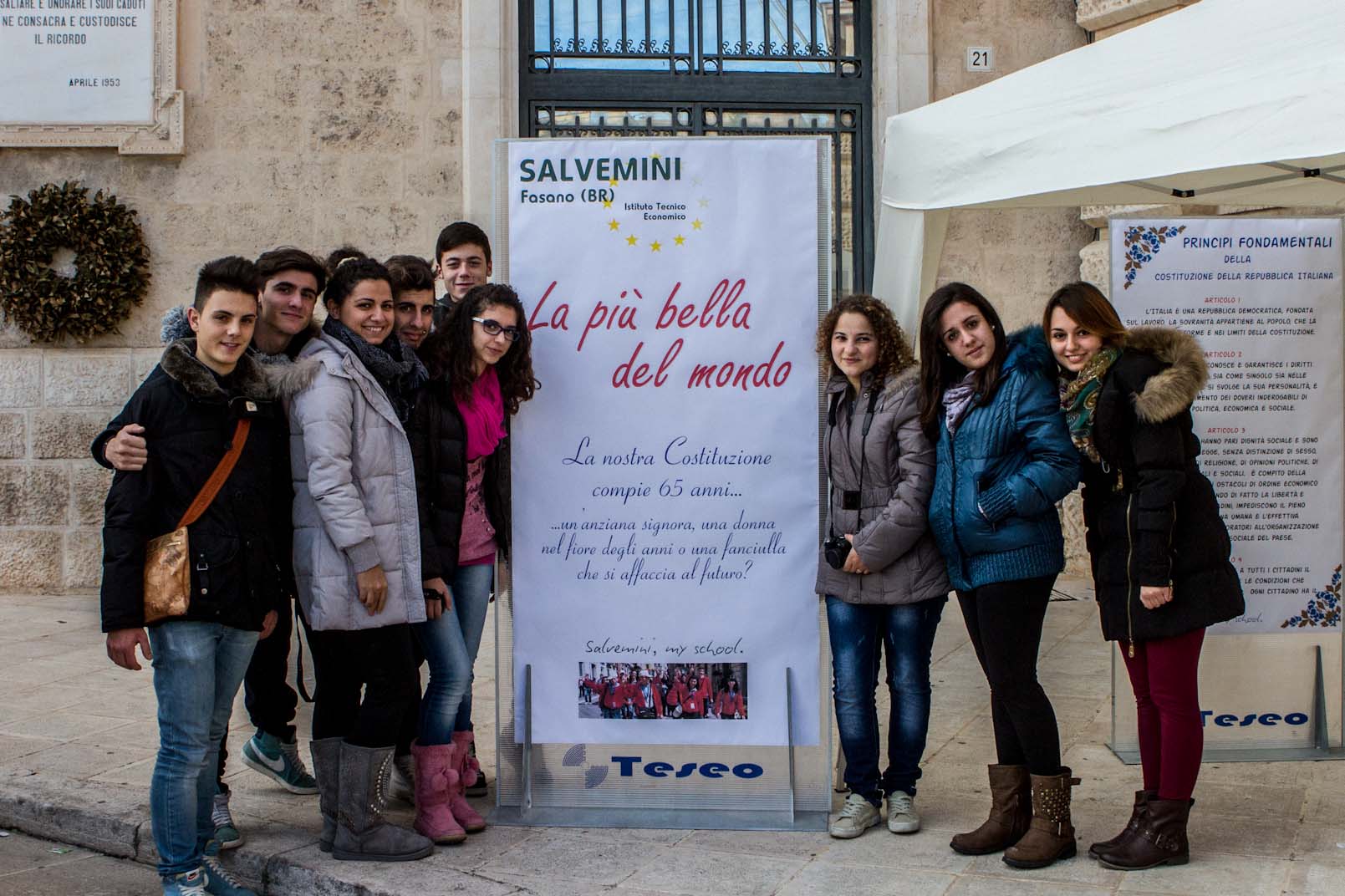 FASANO – Un gazebo, un televisore e alcuni ragazzi armati di videocamere hanno fatto incursione questa mattina, martedì 18 dicembre, in piazza Ciaia. I ragazzi, studenti delle seconde e quinte classi dell'Itc Salvemini di Fasano, da alcuni giorni conducono approfondita un'indagine circa la reale conoscenza della Costituzione italiana tra la popolazione locale.
