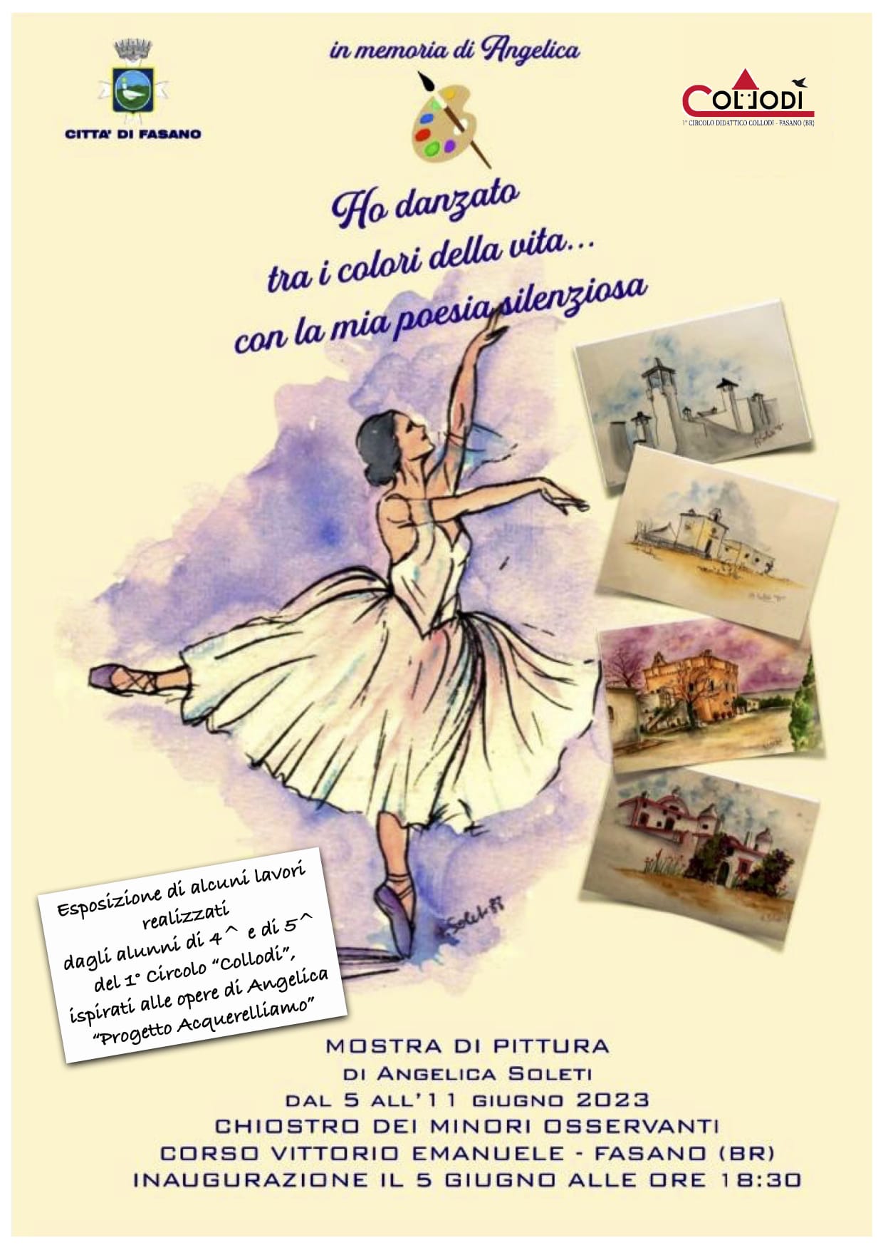 La mostra di pittura è un' idea del comitato in memoria di Angelica, con il patrocinio del Comune di Fasano.