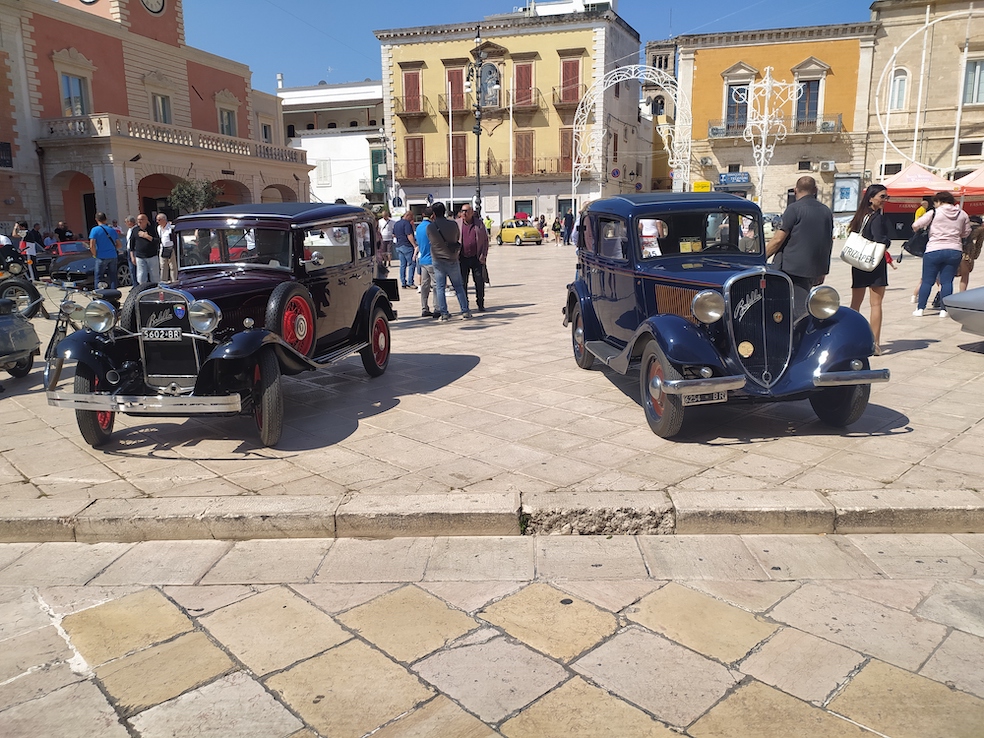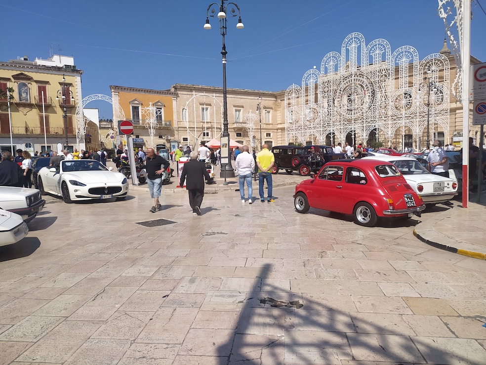 In piazza Ciaia per tutta la mattinata sono state messe in bella mostra oltre 130 auto e una cinquantina di motori, fra cui esemplari molto prestigiosi, provenienti anche dalle scuderie di Veglie, Margherita di Savoia, Ascoli Satriano, Ceglie Messapica a Galatone.