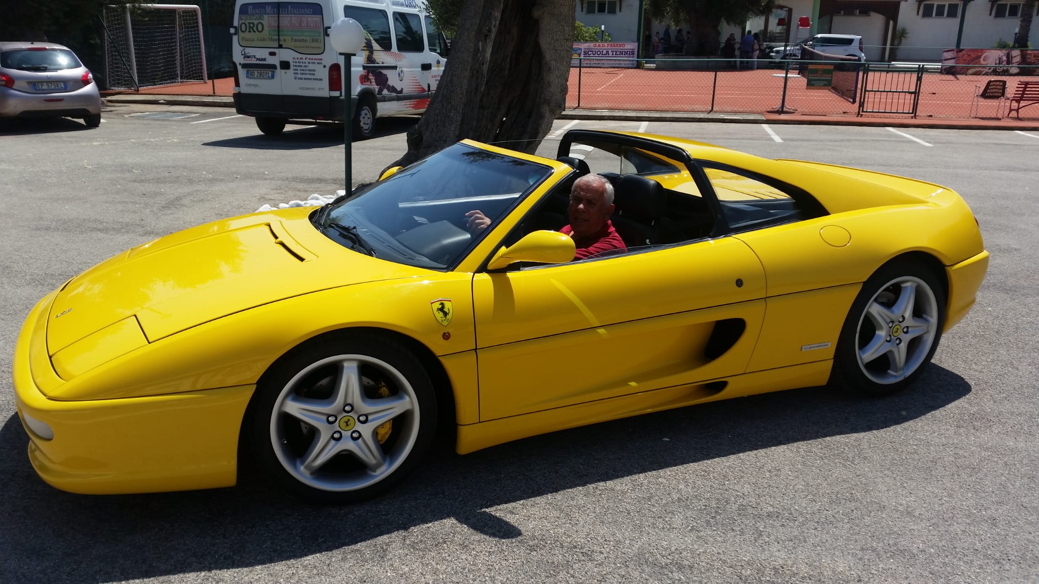 Fra le auto esposte in piazza Ciaia vi era anche la celebre Ferrari 308GTB vetroresina del ’77, la preferita di Nino Gentile che ne è stato l’unico proprietario: di questo modello ne sono stati diffusi nel mondo solo settecento. Questo bolide fu acquistato per conto di Gentile da Dorino Cofano a Prato dalla concessionaria del pilota di Formula Uno, Nanni Galli. Quella Ferrari all’epoca era considerata “il brutto anatroccolo” della casa di Maranello, perché essendo in vetroresina, non era stata apprezzata da nessuno, perché le altre auto erano tutte in lamiera. Galli che l’aveva ritirata dalla Ferrari, la tenne in esposizione, nel suo autosalone per quasi due anni: per provare a venderla, per un certo periodo, la fece usare dal principe Laviano che andava in giro per Prato, proprio per promuovere questa macchina. Perciò la Ferrari di Gentile, pur nuova, quando fu acquistata, aveva già girovagato per circa 2.000 chilometri.