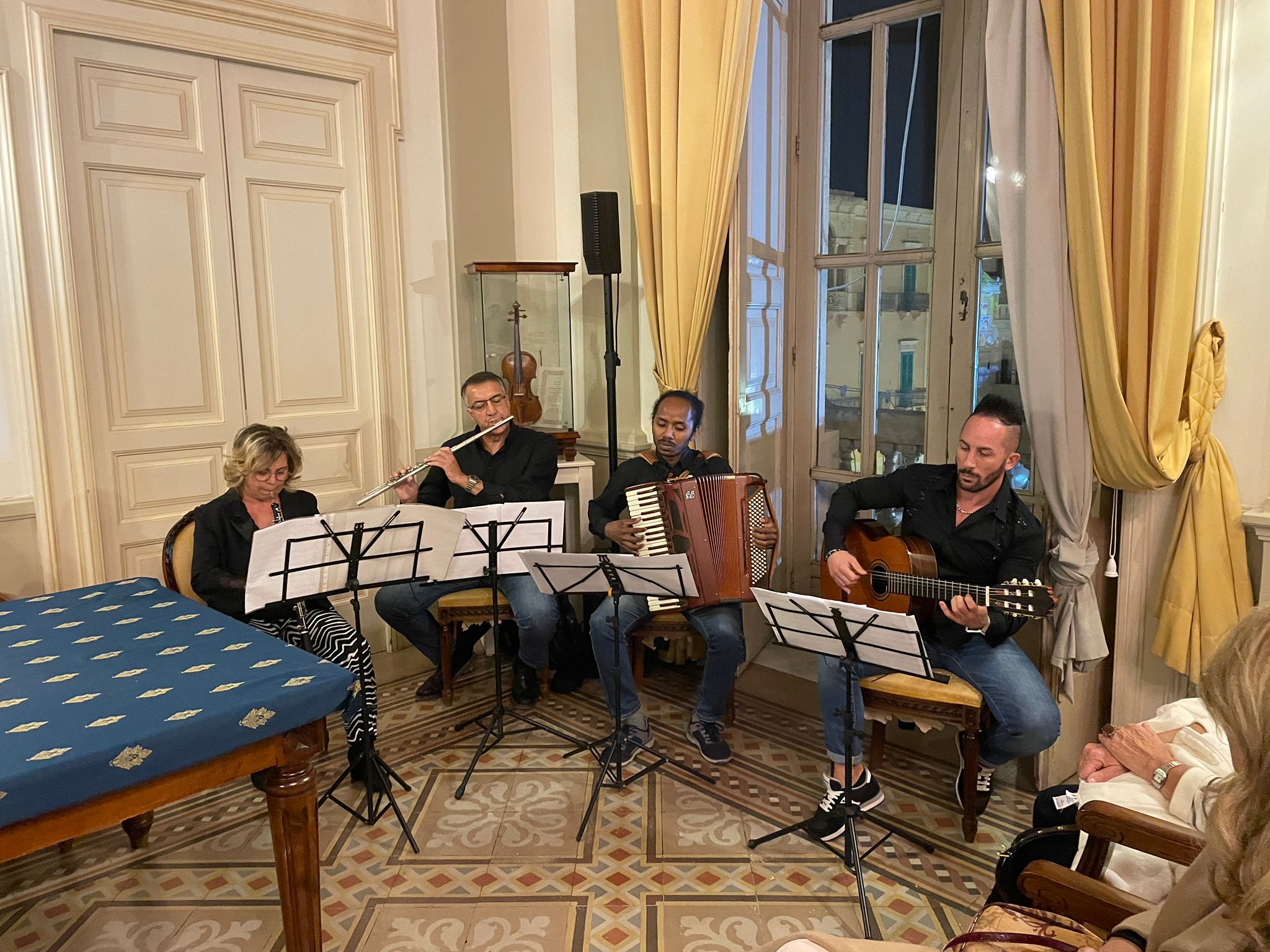La serata è stata deliziata da alcuni intermezzi musicali del quartetto di docenti di strumento dell’istituto costituito da Comasia Zaccaria (oboe), Giovanni Romanazzi (flauto), Bruno Galeone (pianoforte e fisarmonica) e Marco Grassi (chitarra).