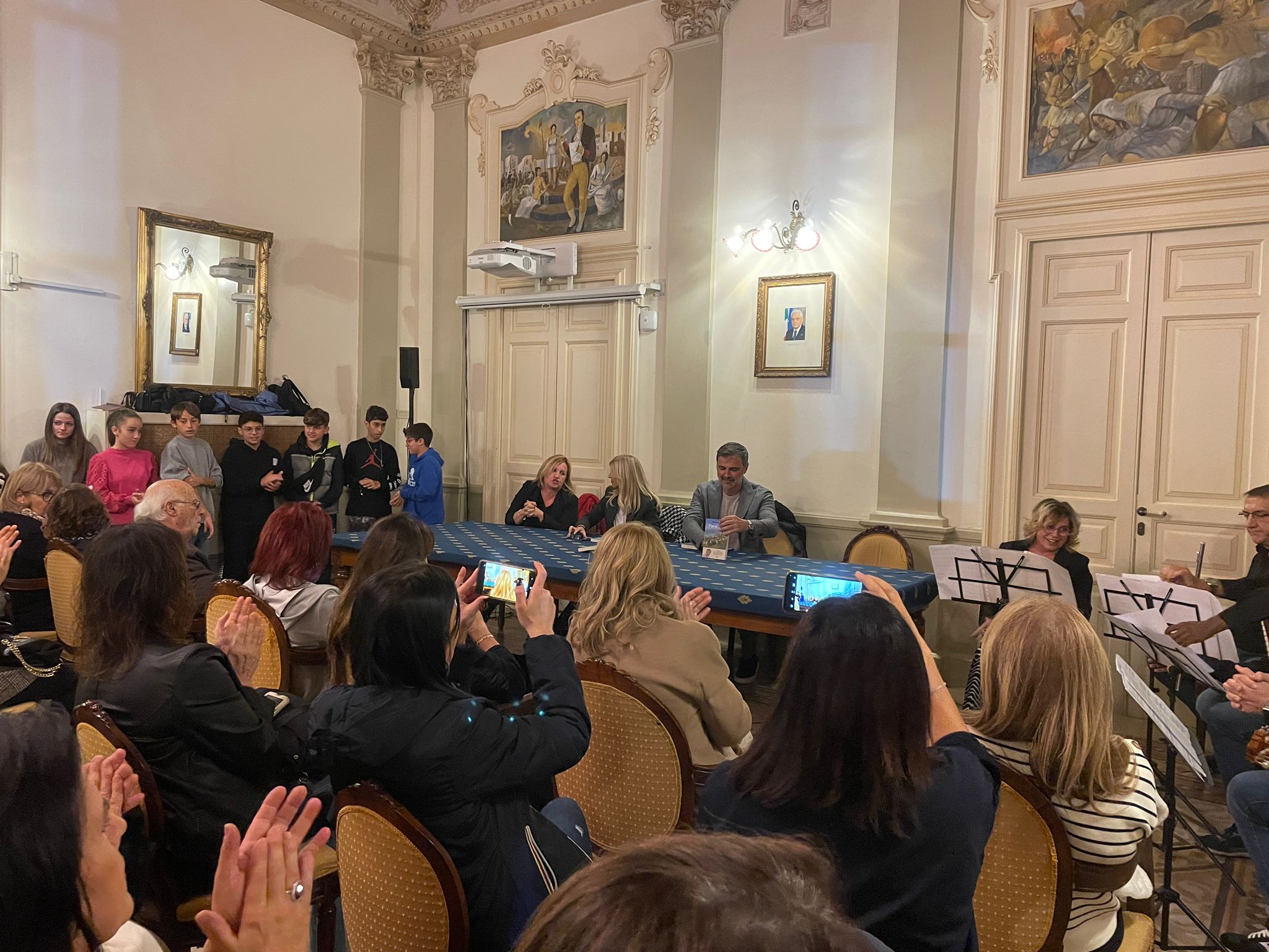 A fare gli onori di casa, l’assessore alla Cultura Cinzia Caroli e la dirigente reggente dell’Istituto Comprensivo “Galileo Galilei” Roberta Leporati.
