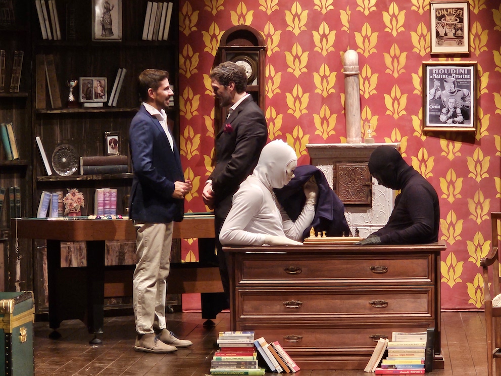 Uno spettacolo diretto da Pietro Baio, tratto dal testo di “Sleuth- L’inganno” di Anthony Shaffer in cui sulla scena si sono alternati i due protagonisti e due automi che “animavano” con le loro risate. La pièce ha avuto diverse sfaccettature: dal giallo al thriller, ma anche gli enigmi e una sorta di lotta di classe dove il ricco proprietario cerca di sopraffare il giovane amante della moglie, di ceto sociale più basso. Ma chi è il reale carnefice e la reale vittima della rappresentazione? Uno spettacolo che mette in luce le varie sfaccettature della psiche umana il cui unico scopo è sopraffare il prossimo per un tornaconto personale. La rappresentazione teatrale mette in evidenza come l’uomo voglia prevaricare sull’altro, senza riuscirci, in cui i ruoli di vittima e carnefice diventano speculari senza soluzione di vittoria.