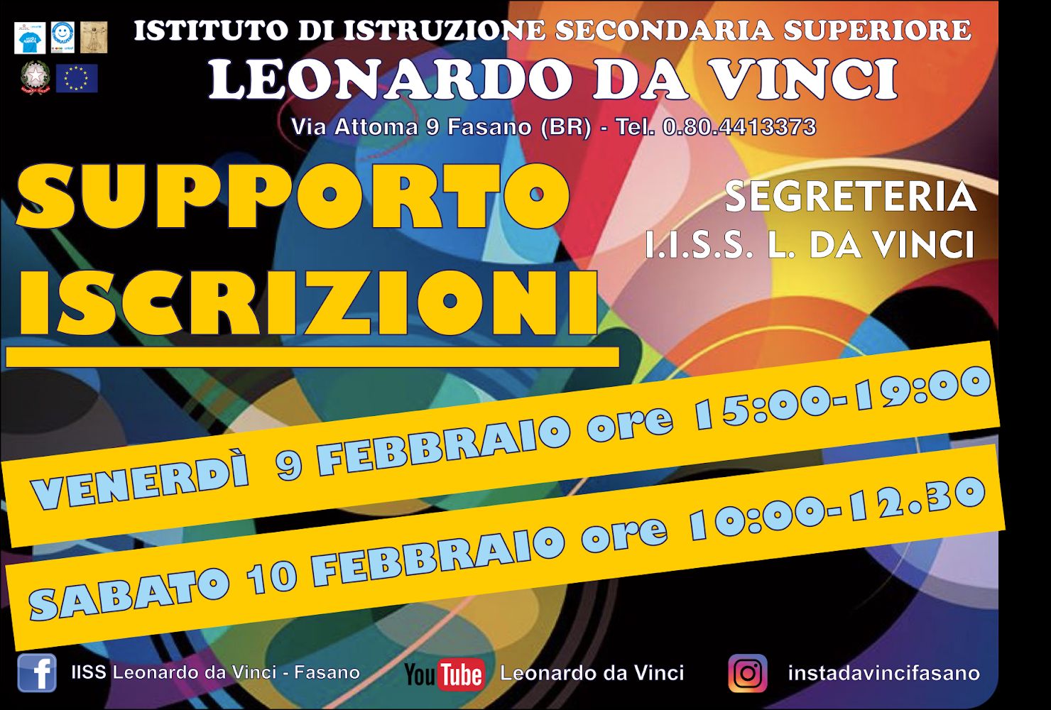 Fasano – Scadranno alle ore 20 di sabato 10 febbraio i termini per iscriversi all’anno scolastico 2024/25, con l’IISS Leonardo Da Vinci di Fasano che sarà aperto sia nel pomeriggio di venerdì 9, dalle 15 alle 19, sia nella mattinata di sabato 10, dalle 10 alle 12.30 per fornire supporto pratico ed indicazioni utili al completamento del processo di iscrizione.
