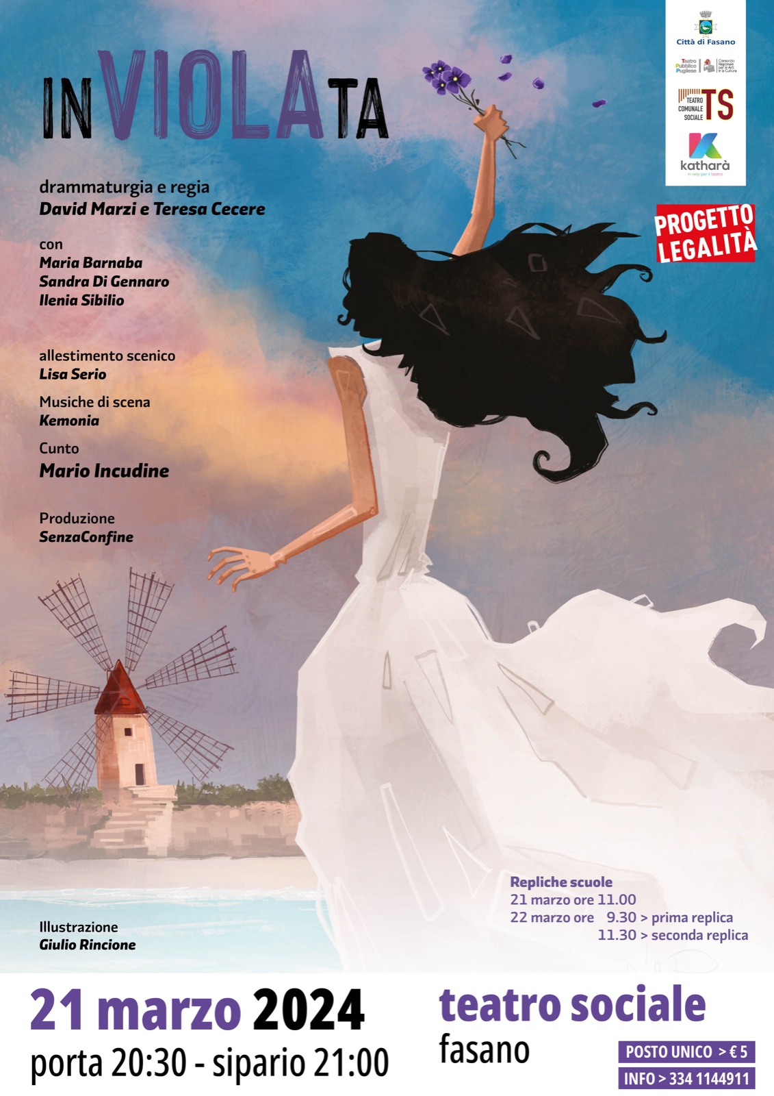 La pièce è “Inviolata” ed è in programma al Teatro Sociale di Fasano giovedì 21 marzo alle 21.00 con repliche riservate alle scuole nelle giornate di mercoledì 21 marzo alle ore 11.00 e giovedì 22 marzo ore 9.30 (prima replica) e 11.30 (seconda replica).