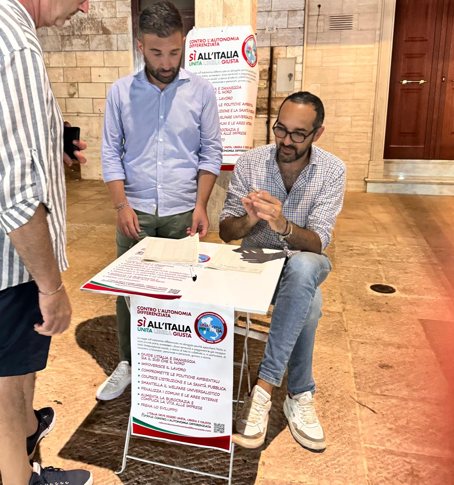 Fasano – Prosegue il tour nel territorio fasanese dei banchetti per la raccolta firme per richiedere il referendum di cancellazione dell’autonomia differenziata.