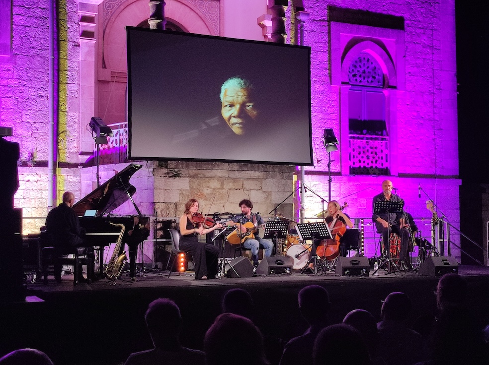 La prima esibizione ha visto sul palco, davanti a un Minareto suggestivo, un ensemble di sette artisti che hanno omaggiato e ripercorso la vita di due grandi uomini: Martin Luther King e Nelson Mandela, divisi dal mare, Mediterraneo e Oceano, ma uniti dallo stesso profondo senso di giustizia nei confronti di situazioni persistenti, inaccettabili in merito alle libertà negate ai neri d’Africa e d’America. Guidati dalla voce narrante di Gabriele Zanini, i musicisti hanno performato brani di grandi autori internazionali come Queen, David Bowie, Dire Straits e italiani come De Gregori, Bertoli e Dalla. Le canzoni hanno ben accompagnato la narrazione, intensa e commovente. Al canto e alla chitarra Rocco Fiore, Gabriele Zanini, voce narrante, Miriam Bisceglie, violino, Giovanna D’Amato, violoncello, Francesco Galizia, pianoforte e sax, Michele Ciavarella, percussioni, Carlo Putignano, arrangiamenti.