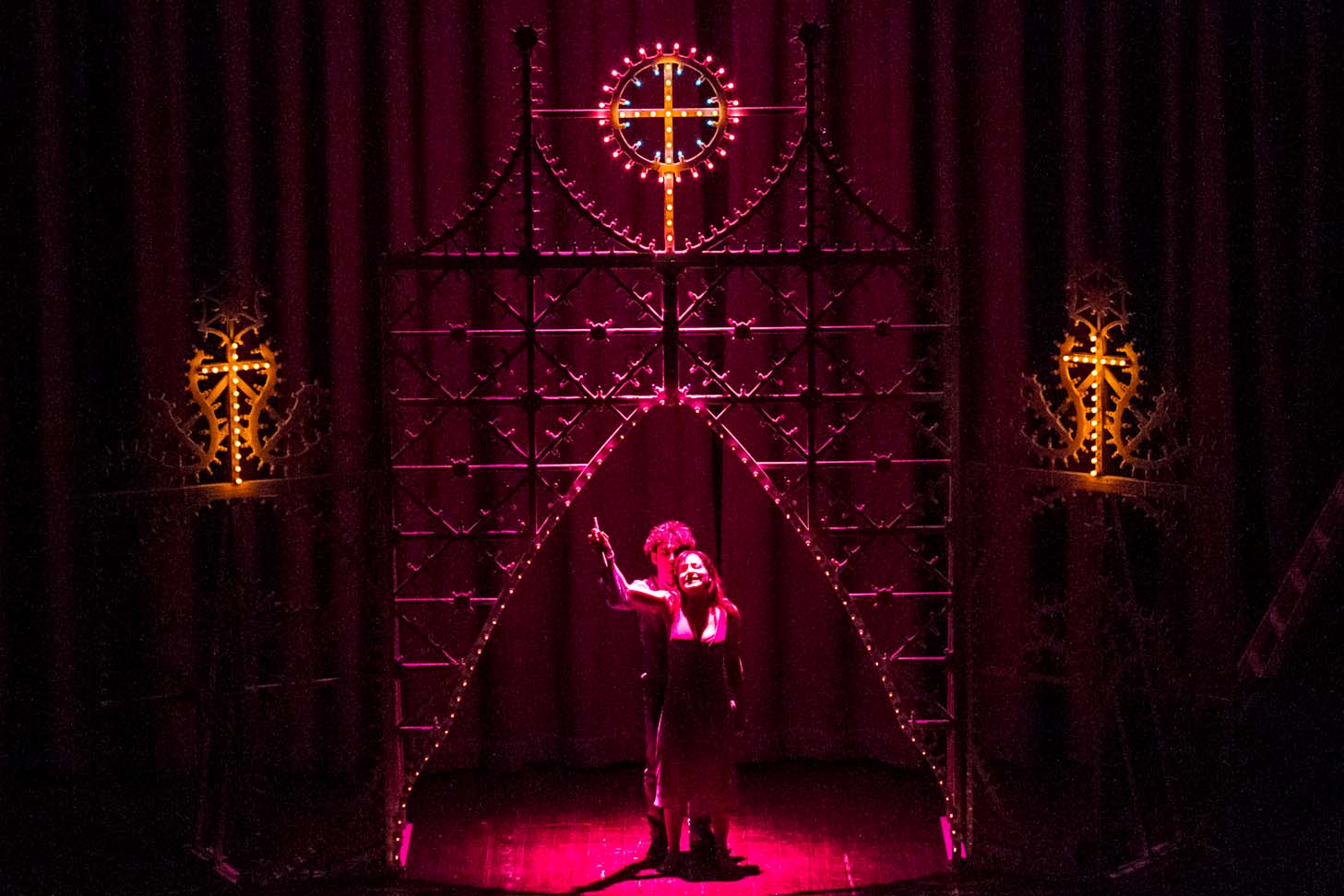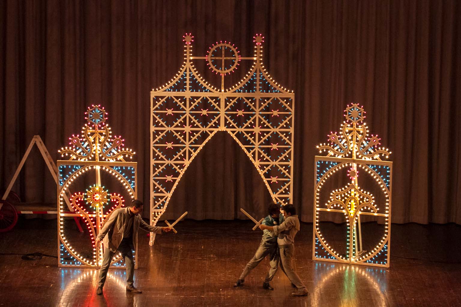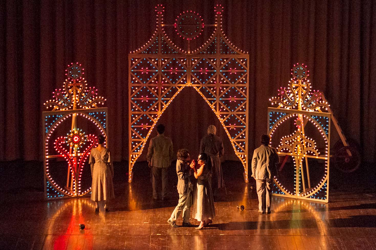 FASANO – Cosa c’entrano “Fiesta” di Raffaella Carrà o “Il carrozzone” di Renato Zero con William Shakespeare? All’unanimità diremmo tutti un bel niente. Almeno fino a quando non si assiste al nuovo adattamento di “Romeo e Giulietta” di Francesco Niccolini e portato, sotto la regia di Tonio De Nitto, in scena ieri sera (venerdì 25 gennaio), al Teatro Kennedy, nell’ambito della stagione teatrale, dalla compagnia Transadriatica. Sette gli attori tra cui il fasanese Fabio Tinella. Una rappresentazione fuori dai canoni che oltre alla originale scelta musicale affianca anche delle luminarie da festa patronale a sottolineare i vari quadri. Il testo di Shakespeare ne esce stravolto con i dialoghi non in rima ma in prosa. «Tutto è gioco – spiega lo stesso Niccolini -, tutto è capriccio, il ritmo e il tono scherzosi, la storia spesso comica, fino a prova contraria, fino al sangue versato, fino a un padre che dà della puttana alla figlia, fino alla morte dei compagni di gioco, fino al rimpianto più feroce e alla colpa. Come nel più classico dei casi da tragedia, la colpa dei padri, che, come scrive Pasolini, deve essere gravissima per meritare una così atroce punizione. Ed è questo il motivo per cui amo tanto Romeo e Giulietta: perché racconta la colpa più grave in assoluto di cui noi essere umani ci macchiamo e subiamo allo stesso tempo, la soppressione dell'infanzia e dell'adolescenza. Una soppressione che tutti piangono, perché tutti siamo stati ragazzi e poi tutto è finito».