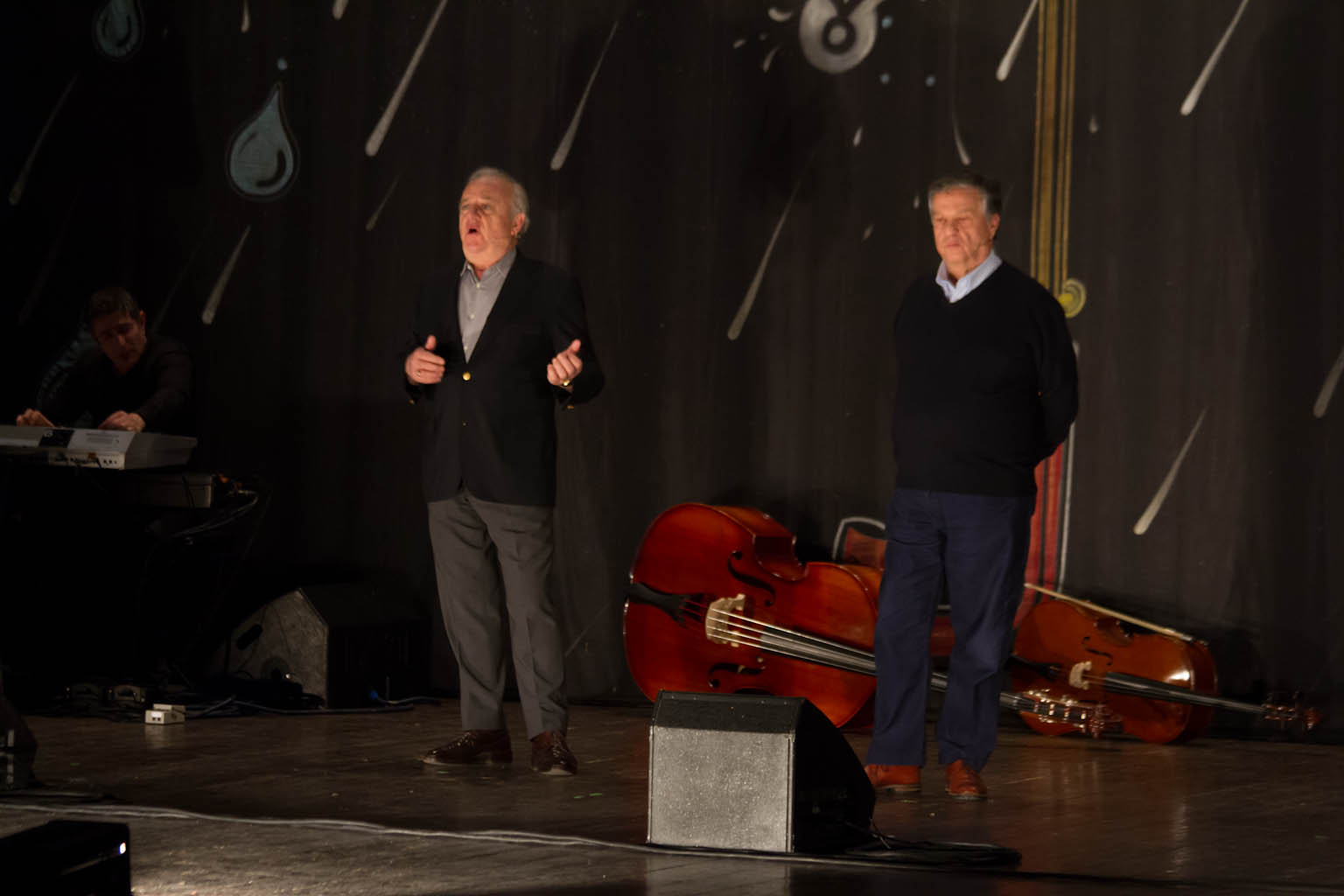 Tanta musica suonata dal vivo e sketch ironici sull’Italia contemporanea e sui politici hanno caratterizzato l’intera esibizione dei due artisti, in grado di far divertire con la stessa passione degli esordi, ma con una comicità rinnovata e originale.