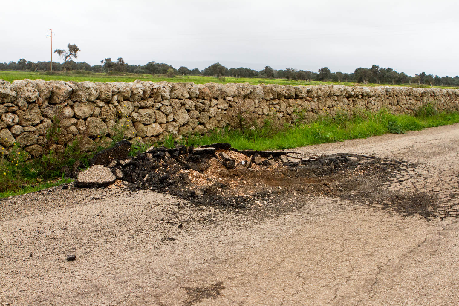 FASANO – Le immagini parlano da se. La strada comunale Pettolecchia nelle ultime settimane sembra un campo minato. Enormi "crateri" sono stati formati dal continuo passaggio di mezzi pesanti e queste buche aggiunte a cumuli di catrame divelta costituiscono un grosso pericolo per gli automobilisti e per i ciclisti che percorrono la strada, pericolo amplificato nelle ore notturne vista la mancanza di pubblica illuminazione.