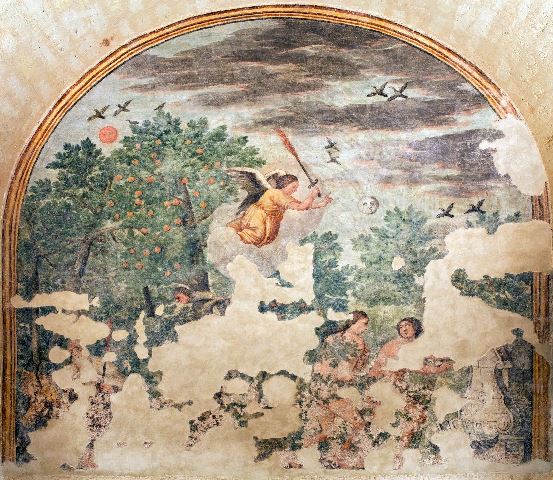 L’affresco risale al Seicento ed è di autore ignoto. E' stato ritrovato sulla parete destra del locale n. 7 dei Portici (di proprietà comunale) a seguito di un restauro di un altro affresco soprastante quello oggi riportato a nuova luce. Così, data la pregevolezza di questo secondo affresco, sia la soprintendenza pugliese che le restauratrici, d’intesa con l’allora Amministrazione comunale guidata dal sindaco Vito Ammirabile, decisero che si poteva non tenere conto dell’affresco visibile ad occhio nudo per dedicarsi a riportare alla luce l’affresco sottostante che rappresenta una scena dell’Antico Testamento: la cacciata di Adamo ed Eva dall’Eden. Il locale n. 7 dei Portici che lo ospita è stato affidato in comodato gratuito, nello scorso dicembre, dall’attuale Amministrazione comunale alla sezione fasanese della “Società di Storia Patria per la Puglia”. Nel corso della conferenza di venerdì, proprio il presidente Trisciuzzi renderà noti i giorni e gli orari in cui il locale sarà aperto al pubblico per ammirarvi l’affresco.