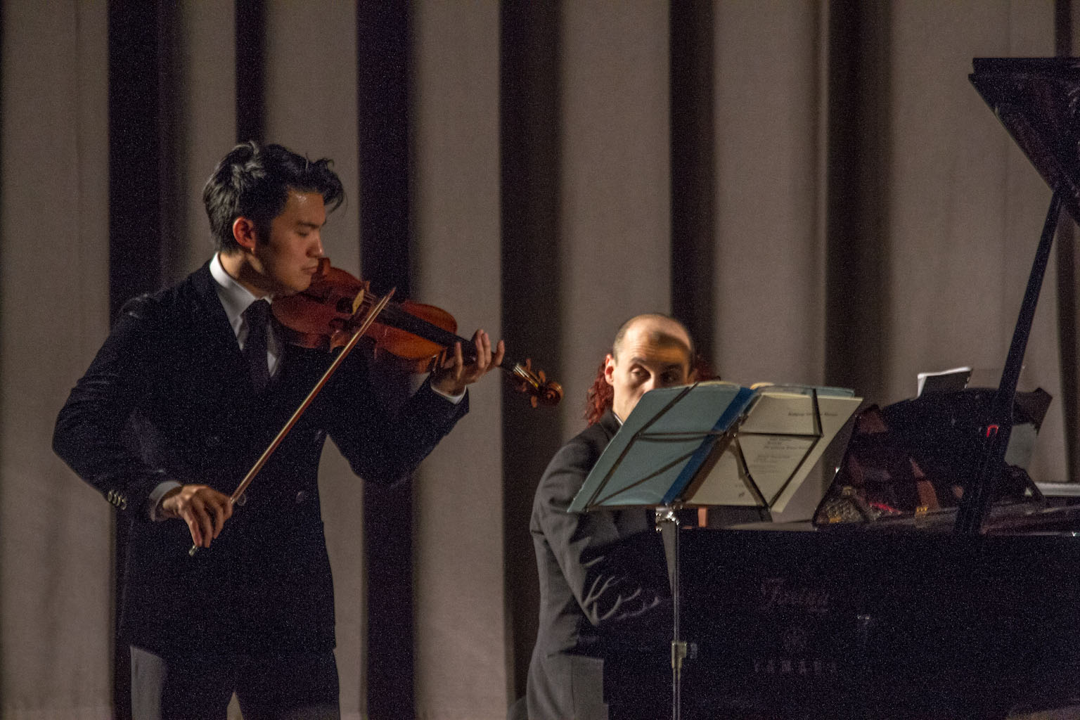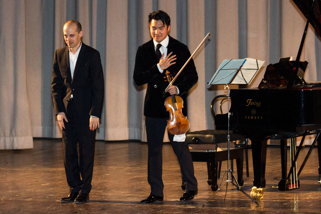 Il 22enne musicista di Taiwan, accompagnato al pianoforte da un altrettanto bravo Julien Quentin, è riuscito a incantare il pubblico suonando per due ore circa brani di Mozart (Sonata per pianoforte e violino in Si bemolle K454), di Brahms (Sonata n.3 in Re minore op. 108), ma anche di Ysaye e Saint-Saens.