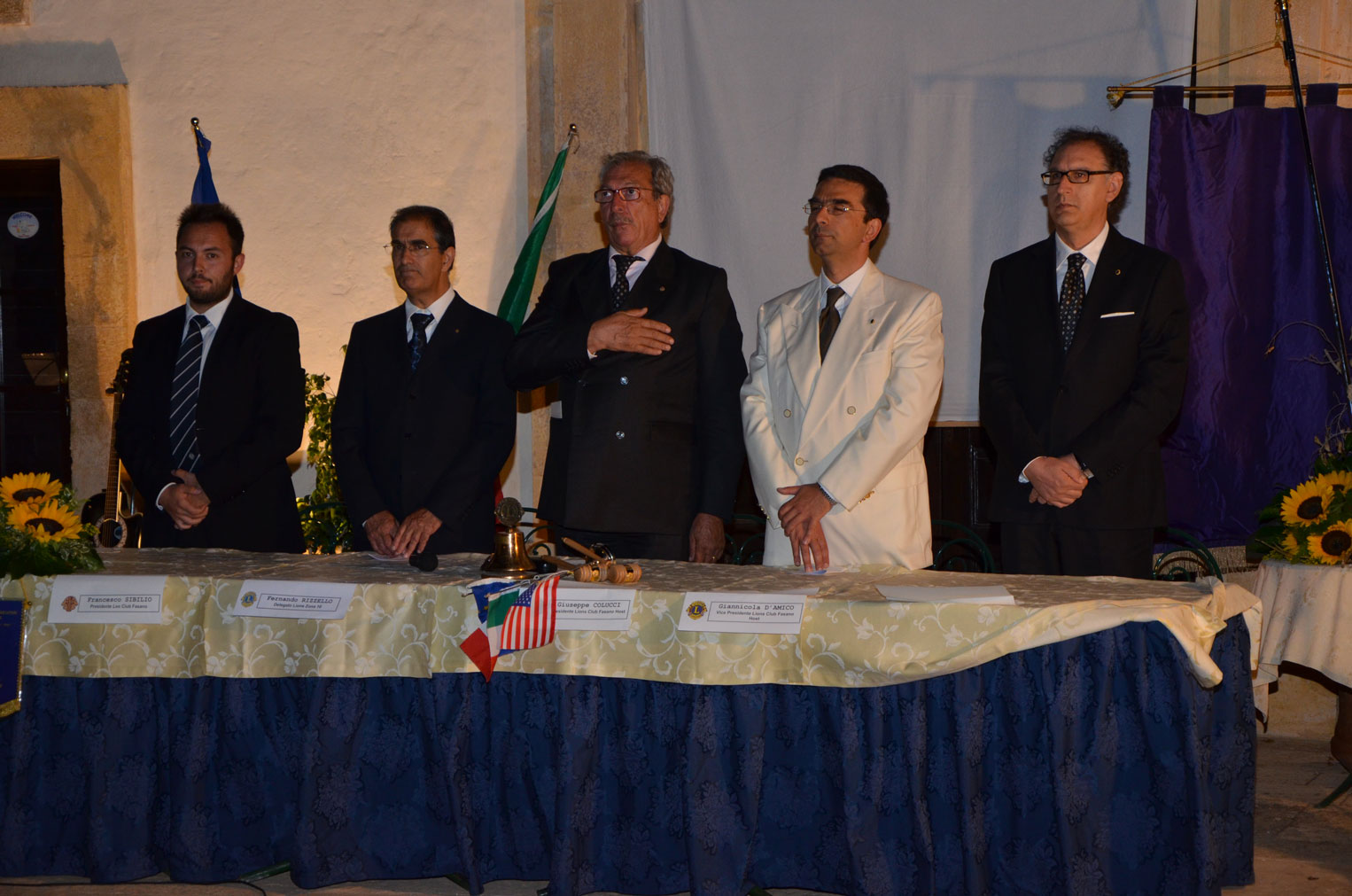 FASANO – Si è svolta il 6 luglio, a Masseria Maccarone, la tradizione cerimonia del “Passaggio della Campana” del Lions Club Fasano Host. Bebè Colucci ha “ceduto il testimone” a Giannicola D’Amico che, dunque, guiderà il Club nel prossimo anno sociale 2013-2014. La serata ha visto la partecipazione di numerosi soci e diversi ospiti tra personalità politiche e delegazioni degli altri clubs del Distretto. Presenti, tra gli altri, il Sindaco Lello di Bari, il consigliere regionale Fabiano Amati e il Delegato di zona Fernando Rizzello.