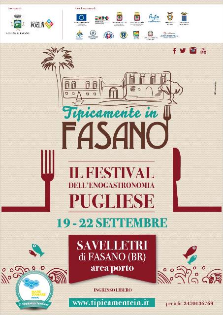 Sul porticciolo di Savelletri in una location a 5 stelle chef rinomati si esibiranno con un vero e proprio spettacolo di “showcooking” per il festival dell’enogastronomia pugliese “Tipicamente in Fasano”, in programma dal 19 al 22 settembre. Un grande evento patrocinato da Regione Puglia e dalle Province di Bari e Brindisi. L’iniziativa lodata anche da Nunzia De Girolamo, ministro delle politiche agricole alimentari e forestali: «Ha il merito di mettere in luce le ricchezze della Puglia, portando all’attenzione del grande pubblico le meraviglie delle sei città delle province pugliesi coinvolte. Un progetto, all’interno dell’immaginario triangolo disegnato da Bari, Brindisi e Taranto, che permette di entrare in contatto con il grande patrimonio che contraddistingue il territorio pugliese attraverso una forma di turismo, quello enogastronomico, davvero importante per l’Italia. Poche altre forme di turismo, infatti, riescono a raccontare con la stessa immediatezza le diverse anime dei territori e delle tradizioni che compongono il nostro Paese».