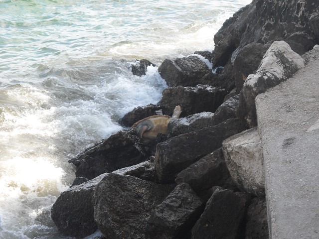 FASANO – Questa mattina (giovedì 29 agosto) una tartaruga di grossa taglia è stata ritrovata sugli scogli di Torre Canne, nei pressi del ristorante Il Buco. L’esemplare si è arenato probabilmente a causa della forte corrente marina: infatti era già stato avvistato dai sub nei giorni scorsi, ancora vivo, e segnalato alla Guardia Costiera.