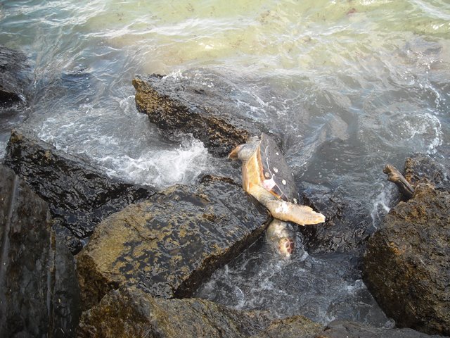 Tanti curiosi si sono fermati sul lungomare a guardare la carcassa, brutalmente sbattuta sugli scogli dalle onde: la Guardia Costiera, sopraggiunta al momento della segnalazione, accerterà la morte della tartaruga e provvederà alla rimozione dello scheletro.