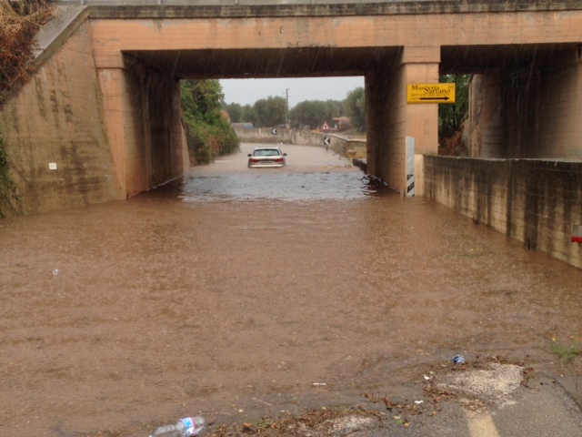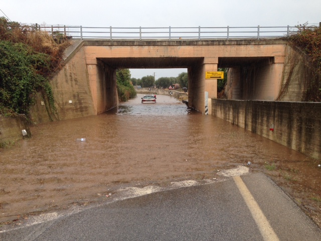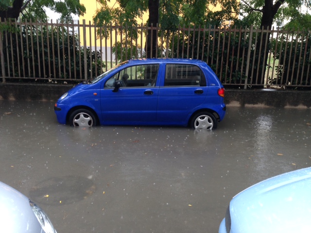 E' quanto accaduto oggi pomriggio (7 ottobre): i casi più eclatanti vengono registrati sotto il ponte della stazione dove un'auto, forse un'Audi, è bloccata con due persone a bordo. Si attende l'intervento dei vigili del fuoco.