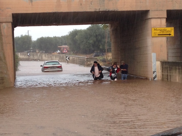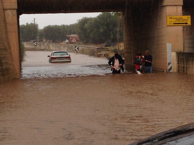 FASANO – Sono stati tratti in salvo i due turisti tedeschi (di stanza nel resort Borgo Egnazia) rimasti bloccati con la loro auto al sottopasso nei pressi della stazione ferroviaria, sulla strada che collega Fasano a Savelletri. I due malcapitati sono stati aiutati da alcuni automobilisti di passaggio che sfidando fango e acqua sono giunti sino all'auto in panne e tirato fuori la coppia ormai presa dal panico. Sul posto è giunta una pattuglia dei Carabinieri e una dei vigili urbani per la viabilità. Si ripropone per l'ennesima volta l'annosa questione del sottopasso ormai pericolosissimo in caso di pioggia.