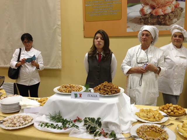 Al progetto Marco Polo dell'Istituto Professionale Salvemini hanno partecipato (coordinati dai docenti Giovanni Legrottaglie, Vito Legrottaglie, Giovanni Semeraro, Vita Ventrella, Concetta Galasso e Dora Tagliente) gli studenti di tutte le classi. Ci sono state anche consulenze esterne con le esperte Margherita Zizzi (in cucina) e Pasquina Cuzzupè (territorio e danze tradizionali). Nel corso della manifestazione conclusiva tenutasi ieri sera, a cui ha presenziato l'assessore comunale alla Pubblica istruzione Renzo De Leonardis, gli studenti hanno preparato e offerto ai presenti dolci di varie nazionalità. Nella scuola fasanese, infatti, ci sono studenti provenienti da Ucraina, Bielorussia, Albania, Inghilterra, Marocco e Brasile. E proprio specialità dolciarie di questi paesi, oltre a quelle italiane, sono state fatte assaggiare ai tanti intervenuti.