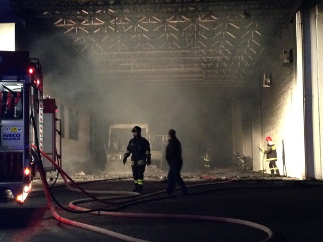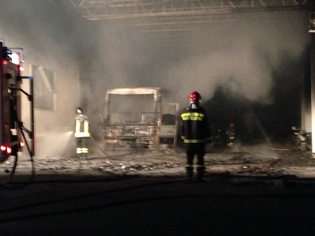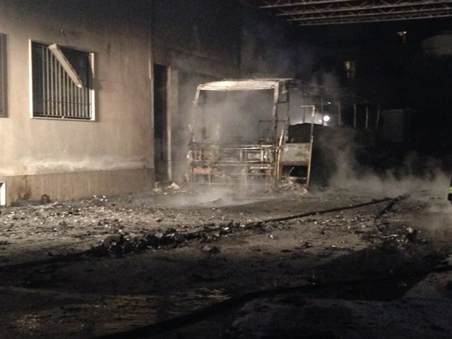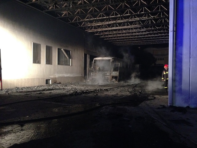 FASANO – Un autobus ha preso fuoco questa notte (sabato 1 febbraio) in un opificio della zona industriale nord di Fasano. Le fiamme si sono levate alte tanto che in pochi minuti il mezzo è stato pressoché distrutto. Paura per alcuni residenti negli appartamenti vicini che sono scesi in strada in attesa dei vigili del fuoco. Il pullman era parcheggiato in un capannone ricavato proprio tra due edifici che veniva usato da una ditta privata di trasporti.