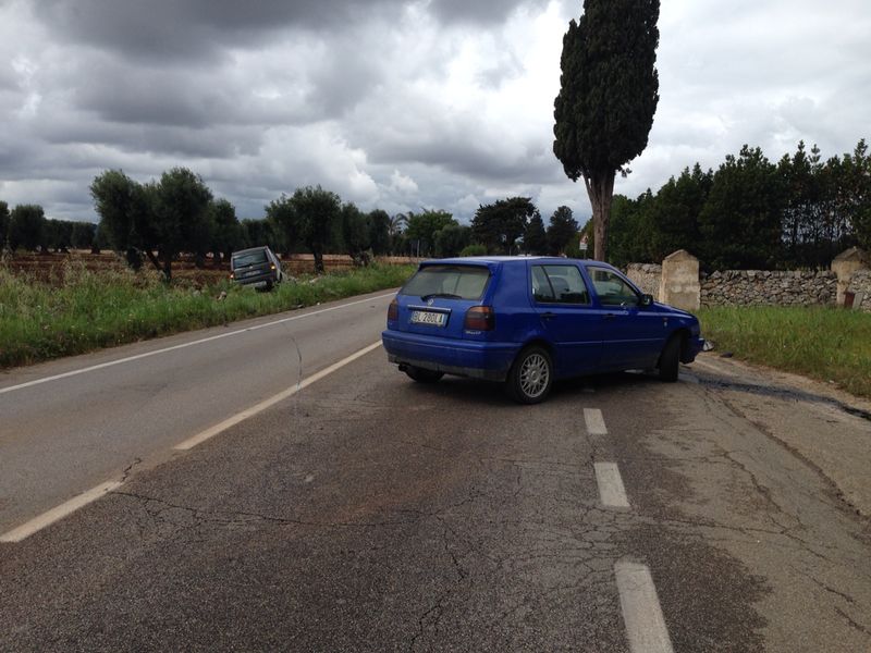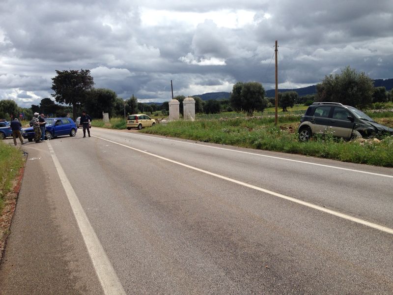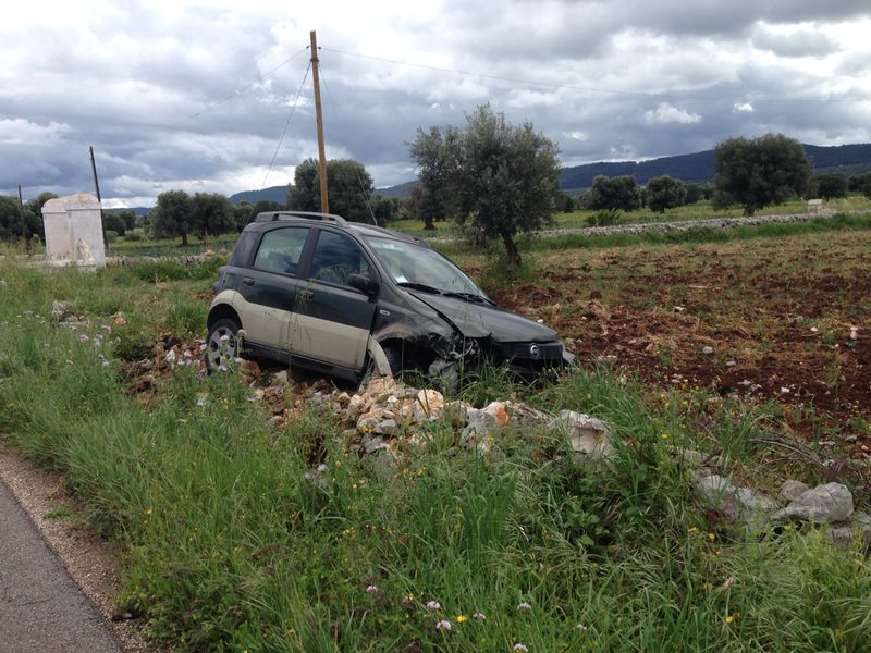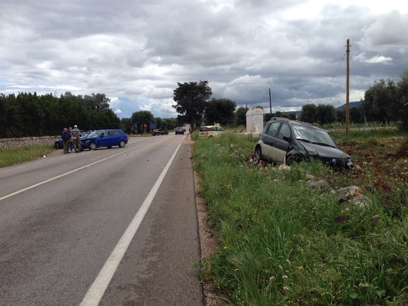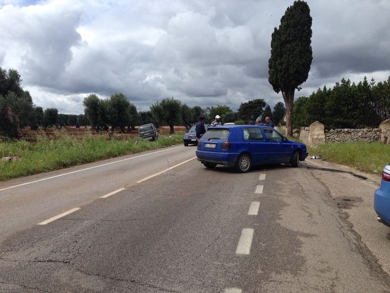 La Panda, dopo il violento scontro, ha concluso la sua corsa fuori strada, abbattendo un muretto a secco e finendo in un terreno attiguo. Conducenti e passeggeri sono stati condotti nell'ospedale di Ostuni perché feriti, sebbene non in maniera grave. Sul posto sono intervenuti i Carabinieri della Stazione di Pezze di Greco per i rilievi di rito mentre una pattuglia della Polizia Stradale del distaccamento di Fasano e la Guardia di Finanza si sono occupate della viabilità.