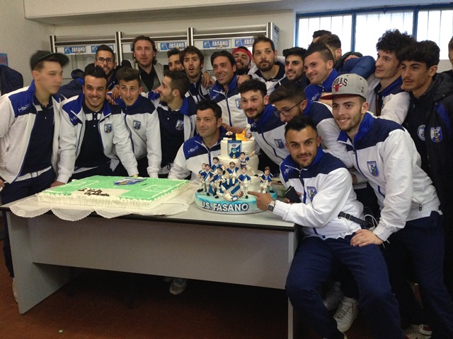 FASANO – Una Domenica delle Palme che Fasano, almeno quella sportiva, ricorderà a lungo. La vittoria sul Maruggio/Palagianello ha una doppia importanza storica: ha sancito l'accesso in Promozione e l'11-0 è il nuovo record in fatto di reti realizzate dai biancazzurri. Al triplice fischio la gioia è esplosa immensa in campo dove i giocatori si sono uniti ai tifosi per cantare cori e slogan contro i "cugini" martinesi. La festa è poi proseguita, per la squadra, all'interno dello spogliatoio dove erano state preparate ben due torte. L'unico neo della giornata, a parte l'incredibile espulsione rimediata da Speciale, il grave infortunio ad una mano occorso a Galiano che si è quasi reciso un tendine con il coccio di una delle tante bottiglie di spumante portate per la festa. Il giocatore, che non aveva partecipato alla partita in quanto squalificato, è stato immediatamente portato in ospedale dal direttore generale Francesco Palmisano. La ferita gli è stata suturata con diversi punti.