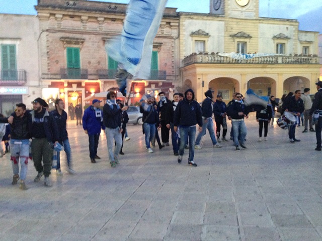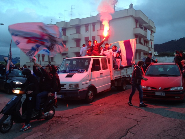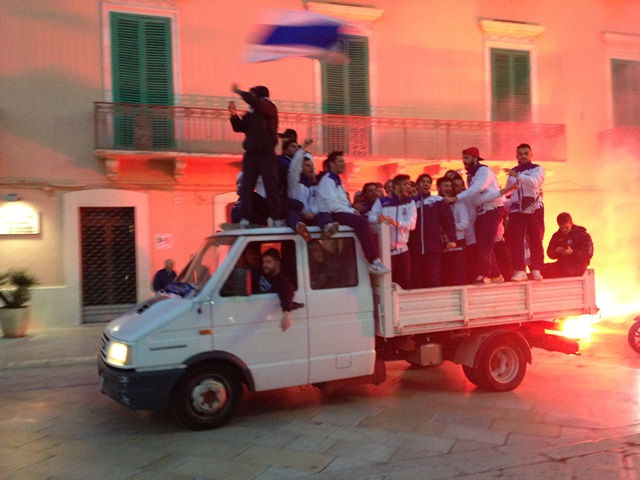Dicevamo della festa. Non poteva certo terminare al Curlo. Infatti i tifosi avevano preparato una sorpresa alla squadra. Un camion su cui giocatori e il tecnico Iacovazzi sono saliti per fare un giro trionfale della città tra cori, suono di clacson e fumogeni. Si è così formato un rumoroso carosello d'auto che si è concluso nella centrale piazza Ciaia dove l'euforia ha coinvolto anche gli altri cittadini presenti. La degna conclusione di una bella giornata di sport e, in particolar modo, per il calcio fasanese.