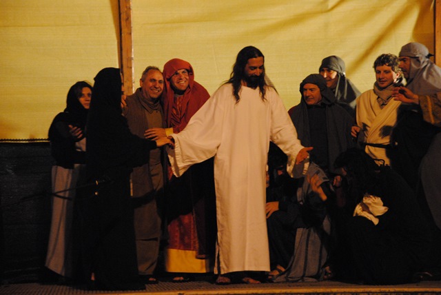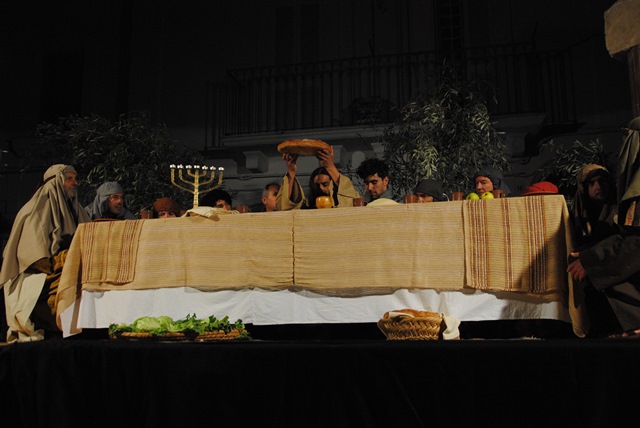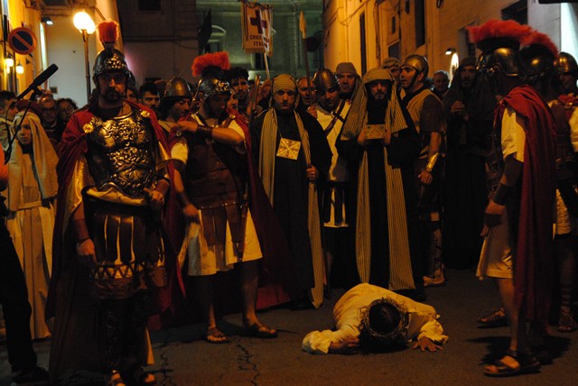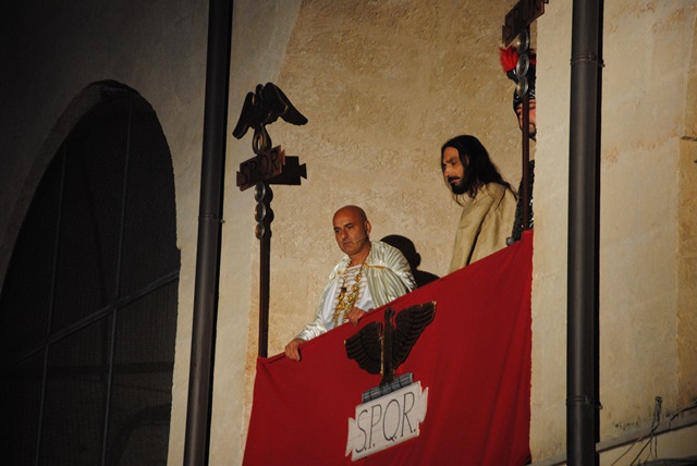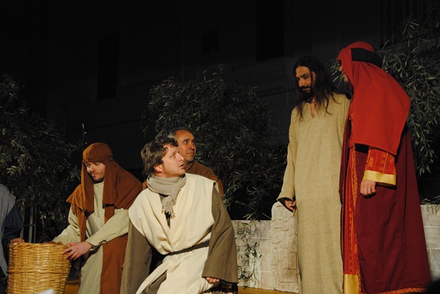 Gli ultimi giorni della vita di Gesù sono stati drammatizzati in piazza Mercato Vecchio: il figlio di Dio, sottoposto alle tentazioni di Satana (denaro, sesso e male), non cede e continua a perseguire la strada del bene; Egli si manifesta con miracoli, guarendo i malati e moltiplicando i cibi, accoglie gli orfani e redime la Maddalena, finché non viene tacciato come impostore e falso profeta. In un susseguirsi di suggestivi quadri, gli attori hanno reinterpretato la lavanda dei piedi, l’ultima cena e il tradimento di Giuda, la visita a Ponzio Pilato e, amaramente, la condanna della folla.
