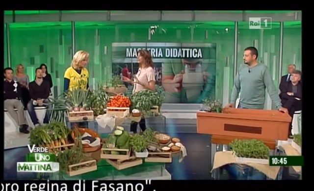 I due fasanesi, ospiti della conduttrice Elisa Isoardi, hanno presentato la loro attività e i prodotti tipici locali. Punto di partenza è stato ‘l’oro rosso’, come definito dalla stessa presentatrice, o meglio il pomodoro regina, Presidio Slow Food e varietà antica coltivata da sempre a Fasano di cui è stato spiegato il nome: «è chiamato così perché pomodoro capostipite, regina di tutti i pomodori – ha spiegato Patrizia Mauro − e perché, se si osserva il picciolo, i sepali sono rivolti verso l’alto e formano la corona di una regina». Accanto al pomodoro non poteva mancare il cotone, coltivato in concomitanza con il pomodoro e altro recupero varietale.