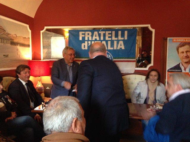 Anche lo stesso Alemanno ha puntato il dito sulla poca attenzione che si sta rivolgendo alla prossima tornata elettorale. "Il problema fondamentale – ha sottolineato – è quello di superare il non prendere sul serio queste elezioni. Sembra che non ci sia grande partecipazione. In questi ultimi giorni bisogna martellare i territori anche perché il nostro partito deve fare i conti con il poco spazio concessoci dai media nazionali. Per noi di Fratelli d'Italia queste Europee sono un esame di maturità. Se otterremo il 4% ci potremo sedere al tavolo principale del centrodestra. Quest'ultimo si rigenera partendo da noi e dai nostri ideali di destra e la riproposizione sul simbolo della vecchia Fiamma Tricolore non è un caso".