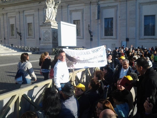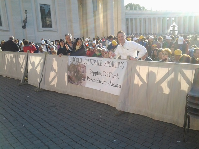 FASANO – Giornata speciale quella di ieri (mercoledì 14 maggio): i soci del circolo "P. Di Carolo" di Pozzo Faceto, infatti, si sono recati a Roma per l'udienza di Papa Francesco festeggiando, al contempo, il 25° anniversario dalla fondazione del sodalizio.