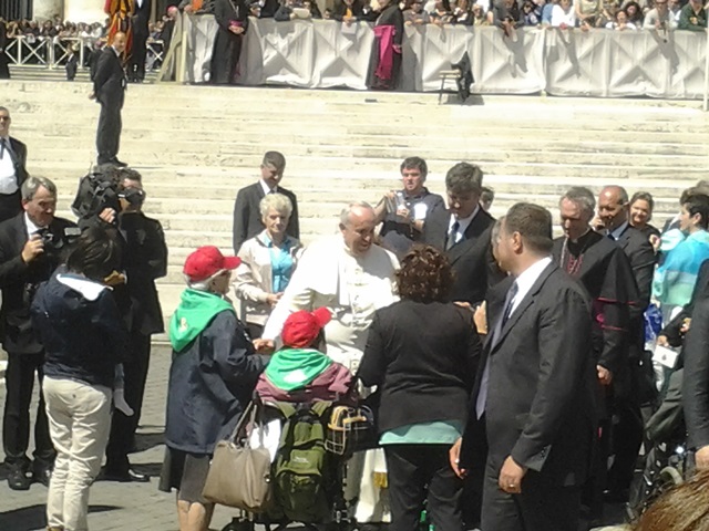 Il contatto con il Santo Padre è stato diretto perché il presidente Bagordo ha donato l'icona della Madonna impressa su pietra, accompagnata da una lettera con la storia dell'associazione. L'emozione era palpabile nei presenti, mentre il papa stringeva le mani a tutti. Bergoglio ha parlato della "fortezza che noi cristiani dobbiamo avere nell'affrontare la vita quotidiana, quella stessa che, libera da timori, abbiamo nel mantenere la famiglia unita".