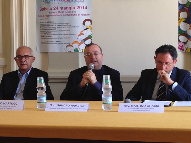 A rappresentare Radio Diaconia, illustrando le finalità del concorso canoro e le informazioni sul programma della serata al Teatro Sociale sono stati il presidente don Sandro Ramirez, priore di Fasano, e il giornalista e collaboratore Oronzo Rubino. In rappresentanza del Comune di Fasano, è intervenuto infine l'assessore ai servizi sociali Vito Martucci.