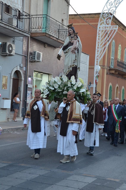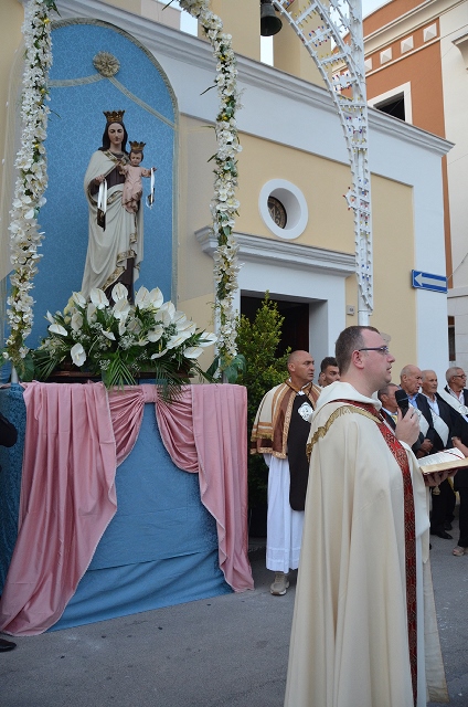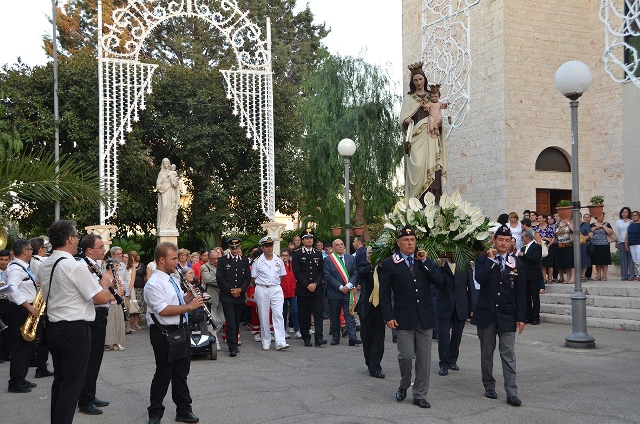 A seguire una piccola processione con la statua della Madonna del Carmine che è stata intronizzata davanti alla chiesetta di piazza XX Settembre e dove vi resterà per tutto lo svolgimento della festa patronale pezzaiola. Il sindaco Di Bari ha poi inaugurato e visitato alcune delle mostre realizzate sia per la festa che, in contemporanea, nel calendario dei festeggiamenti per il bicentenario.