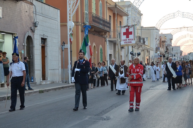 FASANO – Neanche il caldo afoso ha fermato ieri (venerdì 17 luglio) le diverse iniziative allestite dal Comitato per l'inizio dei festeggiamenti in onore della Madonna del Carmine a Pezze di Greco. Si è cominciato col rendere onore ai caduti di guerra e la deposizione, da parte del sindaco di Fasano Lello Di Bari, di una corona d'alloro ai piedi del monumento posto in corso Nazionale. Dopo di che il corteo, composto da diverse autorità militari e rappresentanti di diverse associazioni (erano presenti, tra le altre, la Croce Rossa, l'Associazione Nazionale Carabinieri e l'Associazione Marinai d'Italia) si è spostato in chiesa dove don Francesco Zaccaria ha celebrato una santa messa.