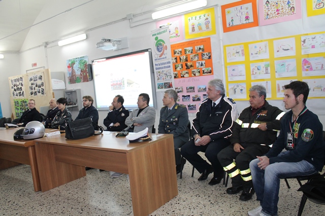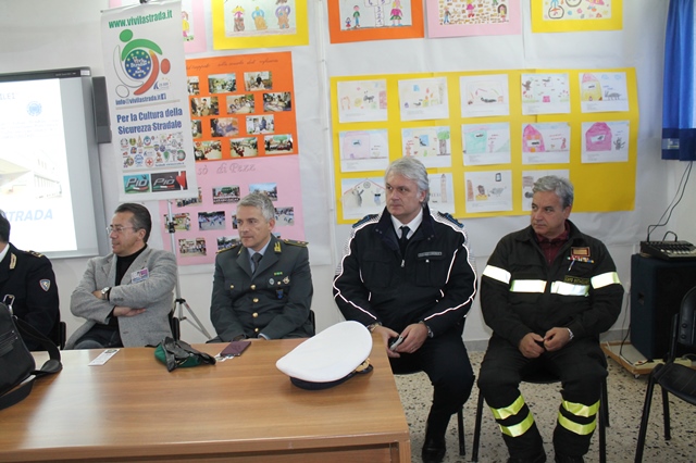 Questo il programma degli altri incontri: venerdì 11 dicembre 2015, “Giochi pirici e materiali esplodenti” (relatore il maresciallo Salvatore Rubbino); giovedì 14 gennaio 2016, “La segnaletica stradale” (commiss. Franco Saracino); martedì 19 gennaio, “Internet, social network e cyberbullismno (cap. Pierpaolo Pinnelli); lunedì 1° febbraio, “Uso del casco e delle cinture” (commis. Martino Russano); mercoledì 17 febbraio, “La velocità e… i suoi limiti” (magg. Fernando Virgilio); lunedì 22 febbraio, serata della sicurezza stradale dedicata a genitori e alunni (Antonio Coladonato); lunedì 7 marzo, “Il ruolo della Protezione Civile sul territorio” (Giannicola D’Amico) e lezione dei vigili del fuoco; venerdì 11 marzo, “La balneazione e i suoi limiti” (m.llo Francesco Cristella); mercoledì 16 marzo e giovedì 17 marzo, “Prevenire meglio che curare” (dott. Massimo Leone); martedì 5 aprile, concerto evento con il m° Vincenzo Deluci. Il progetto si concluderà nella prima decade di aprile (la data non è ancora stata definita) con una grande manifestazione finale che si terrà nello spiazzo antistante la cooperativa Copape a Pezze di Greco.