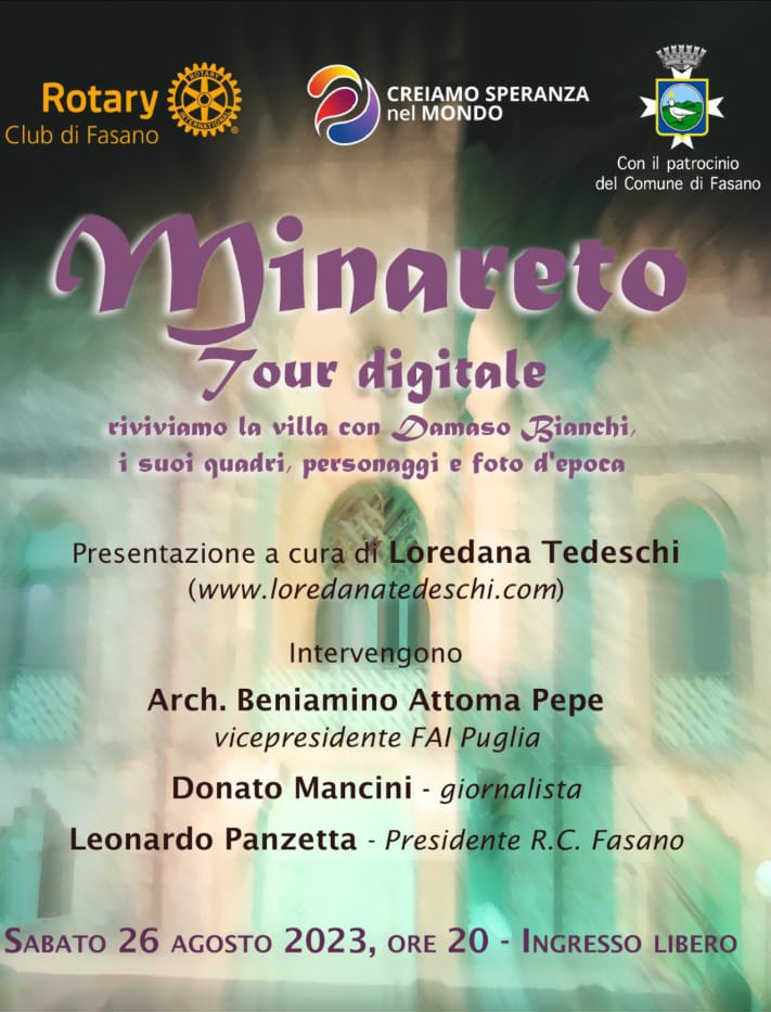 Come di consueto le manifestazioni programmate sono numerose e variegate, incentrate quest’anno sul Minareto, la villa simbolo della Selva che compie 100 anni in quanto edificata nel 1912 da Damaso Bianchi, pittore fasanese e uomo di cultura, il quale realizzò la residenza in stile moresco ispirato alla costruzioni orientali.