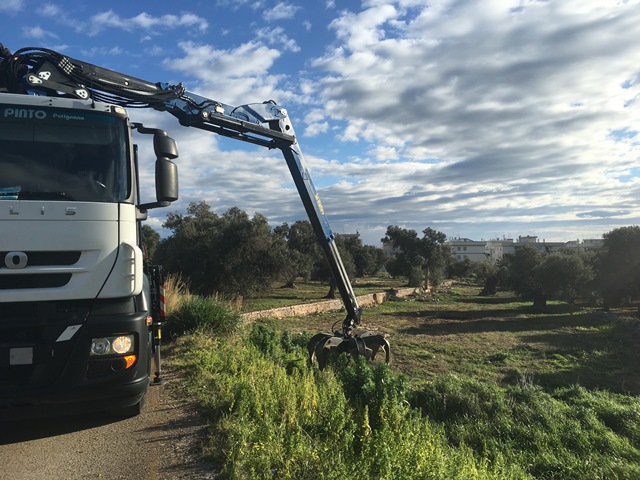 La società altamurana è intervenuta addirittura con un camion dotato di gru per ripulire fossati da quintali di spazzatura