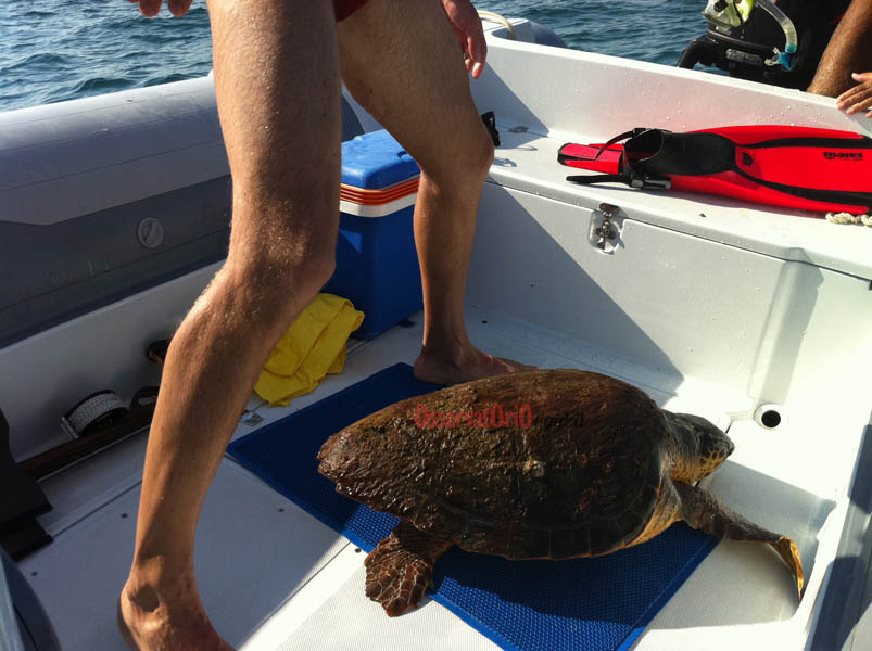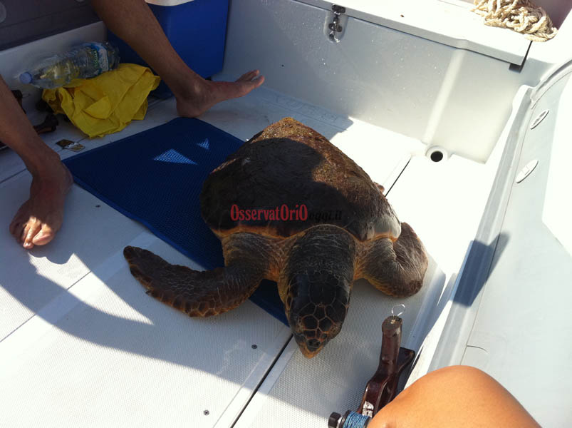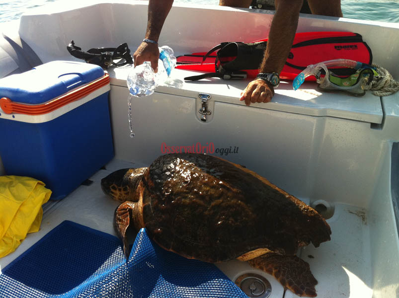 FASANO – «E’ solo una tartaruga spaventata e con ogni probabilità sta cercando una spiaggia dove deporre le sue uova». Nicola Putignano, subacqueo apneista professionista, dice questo dopo aver avuto un contatto diretto con la famosa tartaruga di Savelletri. Ieri (domenica 26 agosto), mentre era in mare con il suo gommone davanti al lido “la Sirenetta” è stato allertato da alcuni bagnanti che gli segnalavano la presenza dell’animale a pochi metri dalle boe che delimitano il lido stesso. La decisione, dopo aver anche parlato con la Guardia Costiera, è stata presa in tutta fretta. Catturarla per allontanarla dalla spiaggia per poi liberarla in alto mare. E così è stato. Osservatoriooggi.it vi propone le immagini in esclusiva della cattura e la sua successiva liberazione. Ma dalla chiacchierata con Putignano ecco emergere l’assoluta non pericolosità della tartaruga che se lasciata tranquilla non attacca assolutamente l’uomo. Anzi, secondo lo stesso Putignano sono anche giocherellone.