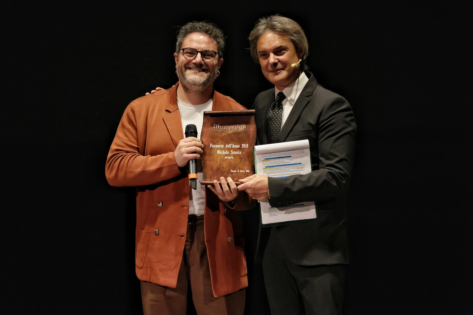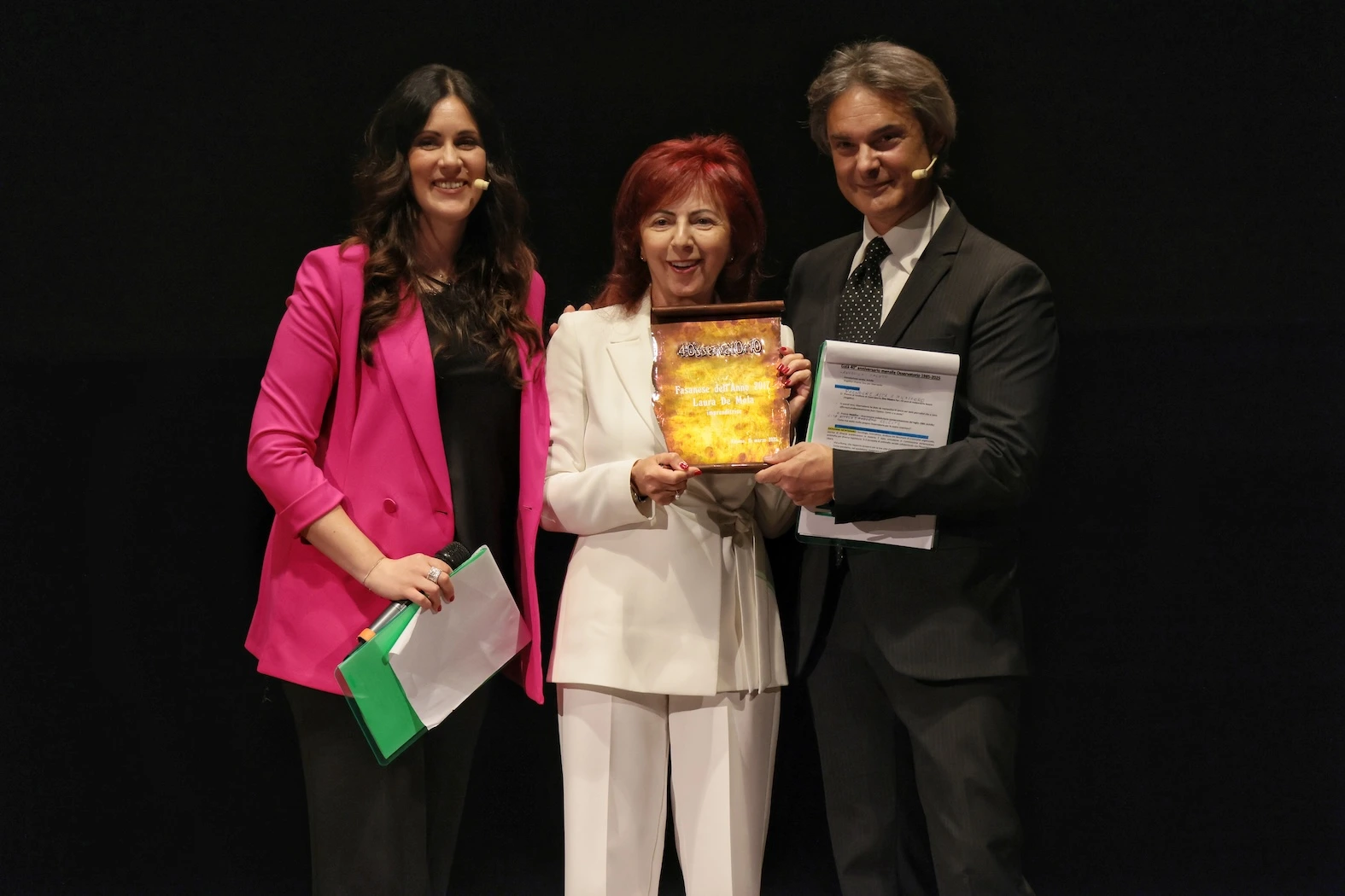 Continuando a celebrare l’arte è stato il momento del Fasanese dell’Anno 2018, l’attore Michele Savoia, insignito di un David di Donatello in quello stesso anno. È stata poi la volta del magnifico rettore del Politecnico di Bari, Francesco Cupertino, Fasanese dell’Anno 2019: il rettore, che a breve terminerà il suo mandato, ha voluto ribadire l’importanza di dare ai giovani opportunità di espressione e di lavoro. La presidente dell’UTL, Palmina Cannone, Fasanese dell’Anno 2020, è stata poi invitata a salire sul palco: nel suo intervento ha sottolineato l’importanza della ricerca storica e l’impegno che l’UTL investe nel tenere vive le tradizioni fasanesi. A seguire, con un volo nello spazio, è stato il turno dell’imprenditore Flavio Gentile, Fasanese dell’Anno 2021, che ha realizzato la tuta spaziale innovativa EMSi per combattere il problema della perdita di massa muscolare e scheletrica degli astronauti causata dalla microgravità, utilizzata durante la missione Ax-3, nella Crew Dragon di SpaceX. Nel 2022 sono stati nominati Fasanesi dell’Anno ex-equo due illustri medici: il genetista Mattia Gentile e il neurochirurgo Fabio Cofano. Il primo, impossibilitato a esserci, ha inviato un emozionante videomessaggio. Il dott. Cofano sul palco ha voluto ricordare di quando, anche lui, scriveva per Osservatorio.