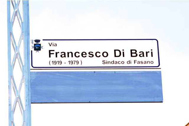 Una cerimonia particolare, soprattutto per l’attuale sindaco di Fasano, Lello Di Bari, in quanto non capita spesso che un amministratore si trovi a dedicare una via al proprio padre. E proprio il primo cittadino, accompagnato dalla nipote Francesca ha scoperto la targa di “via Francesco Di Bari – sindaco di Fasano” mentre un trombettiere suonava il silenzio. Presenti anche altri ex sindaci come Sante Nardelli, Pietro Dell’Anno, Domenico Mileto e Orazio Ferrara.