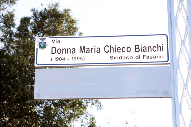 FASANO – Un nuovo, nascente quartiere di Fasano avrà tutte strade intitolate ai sindaci della città. E le prime due realizzate sono state inaugurate ieri (martedì 24 aprile), con la scoperta delle targhe dedicate a Donna Maria Chieco Bianchi e Francesco Di Bari. La Chieco Bianchi fu sindaco di Fasano dal 1949 al 1954 mentre Di Bari fu il primo sindaco d’epoca repubblicana. Eletto nel 1946 governò fino al 1949.